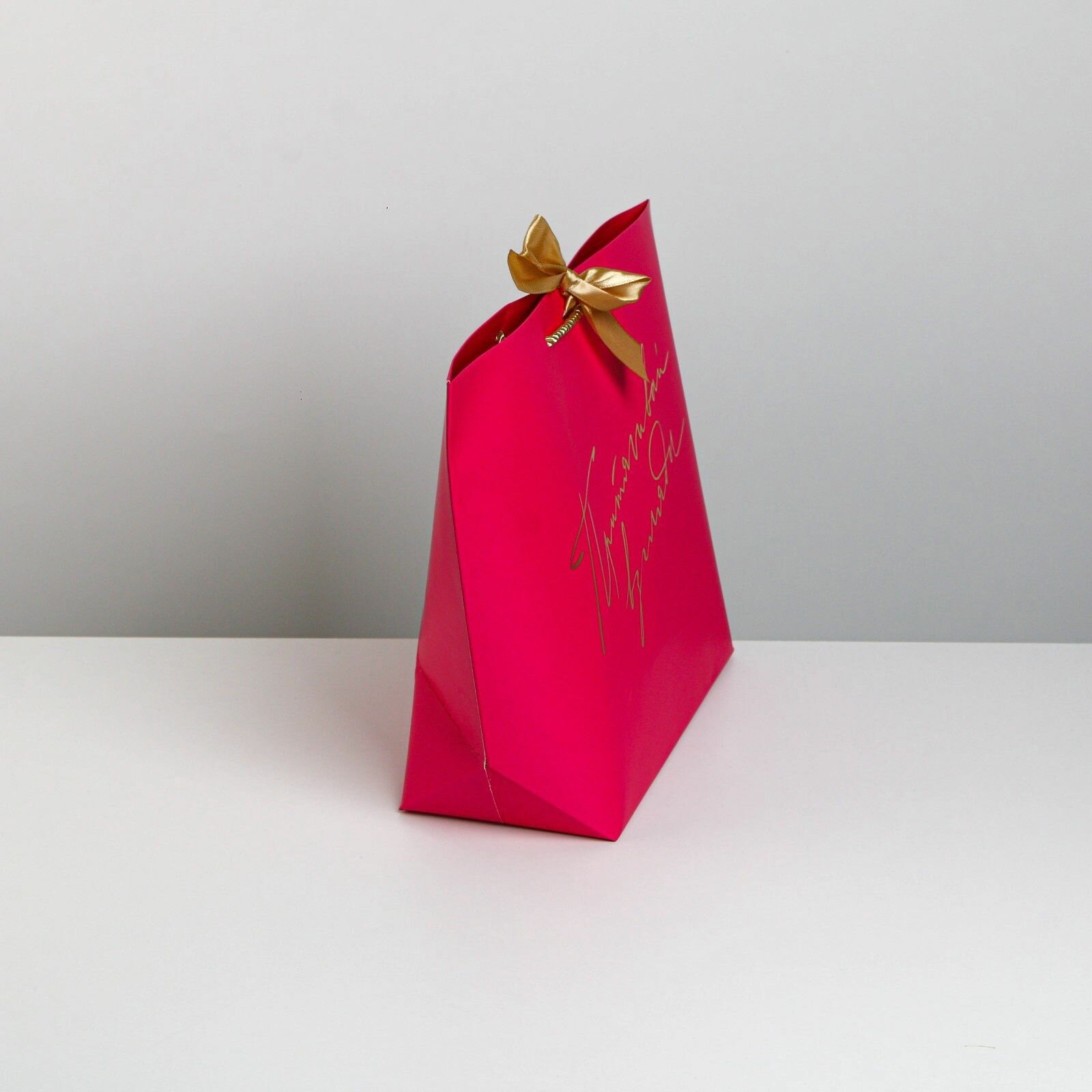 Пакет подарочный с бантом, розовый, 19 х 20 х 9 см, с надписью, лента в комплекте 89 ₽