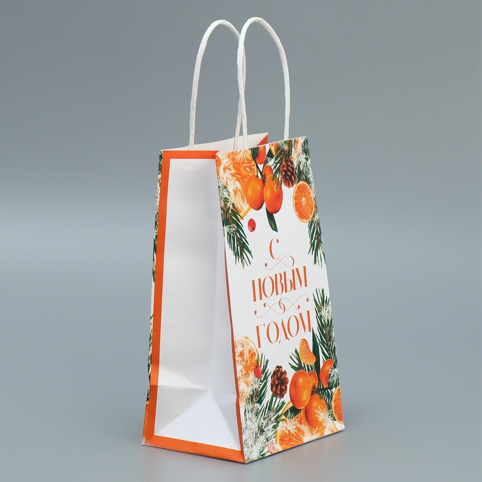 10 цен на Пакет подарочный новогодний крафтовый Новогодний цитрус , 12 х 21 х 9 см