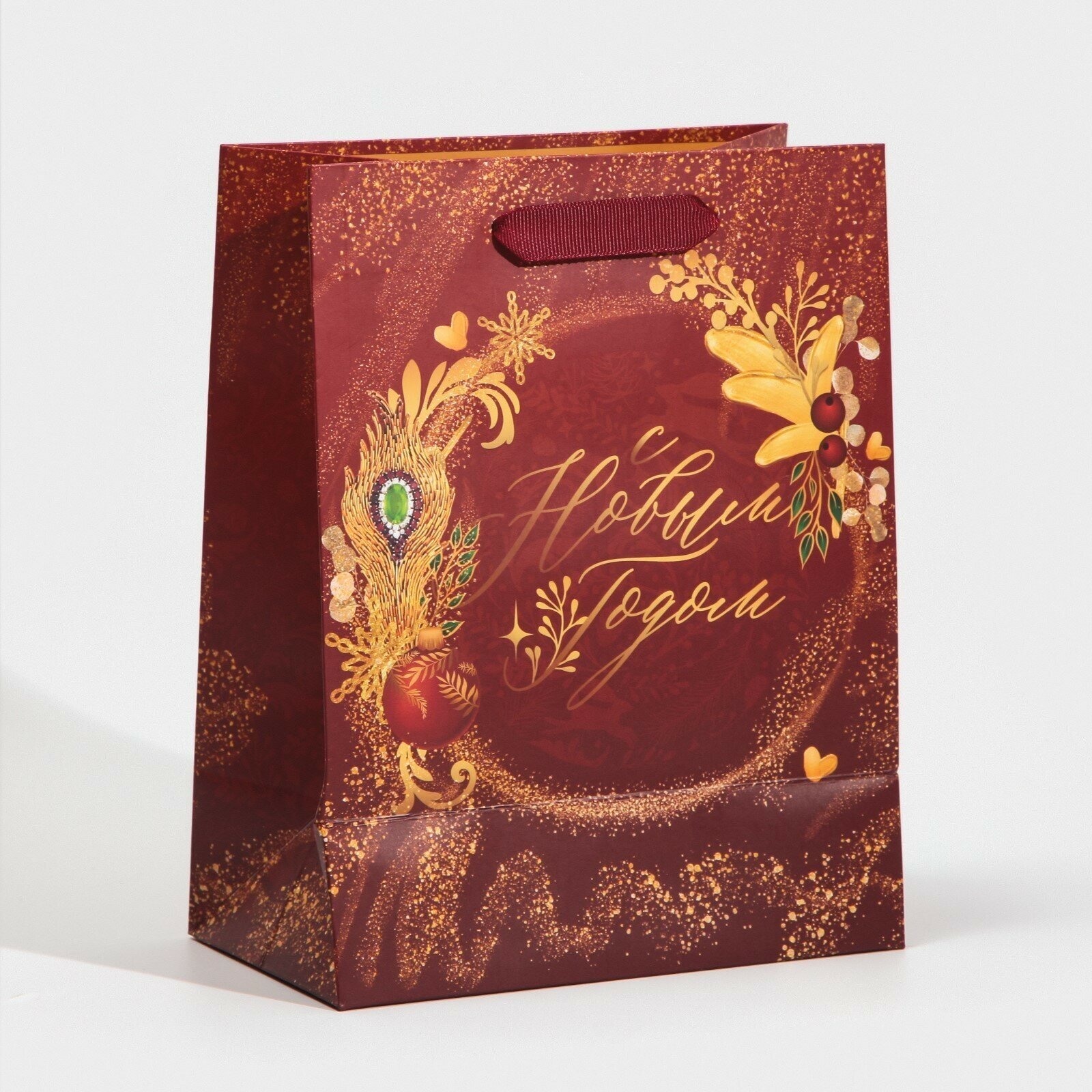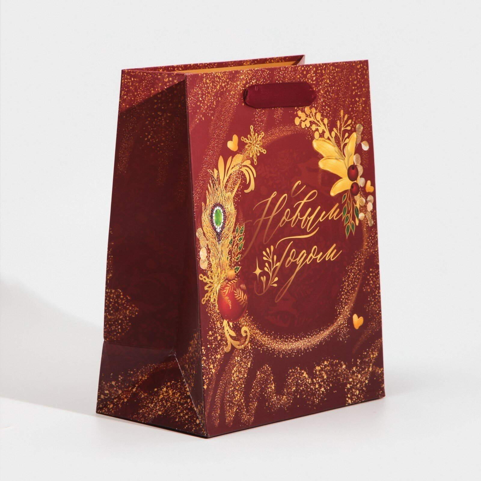 Подарочный пакет новогодний ламинированный «Жар-птица», ML 23 х 27 х 11,5 см, для упаковки подарка на Новый год. 131 ₽