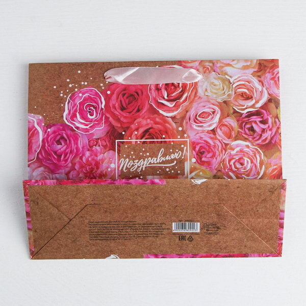 Отзывы на Пакет подарочный крафтовый горизонтальный, упаковка, "Цветочное настроение", L 40 x 31 x 11.5 см