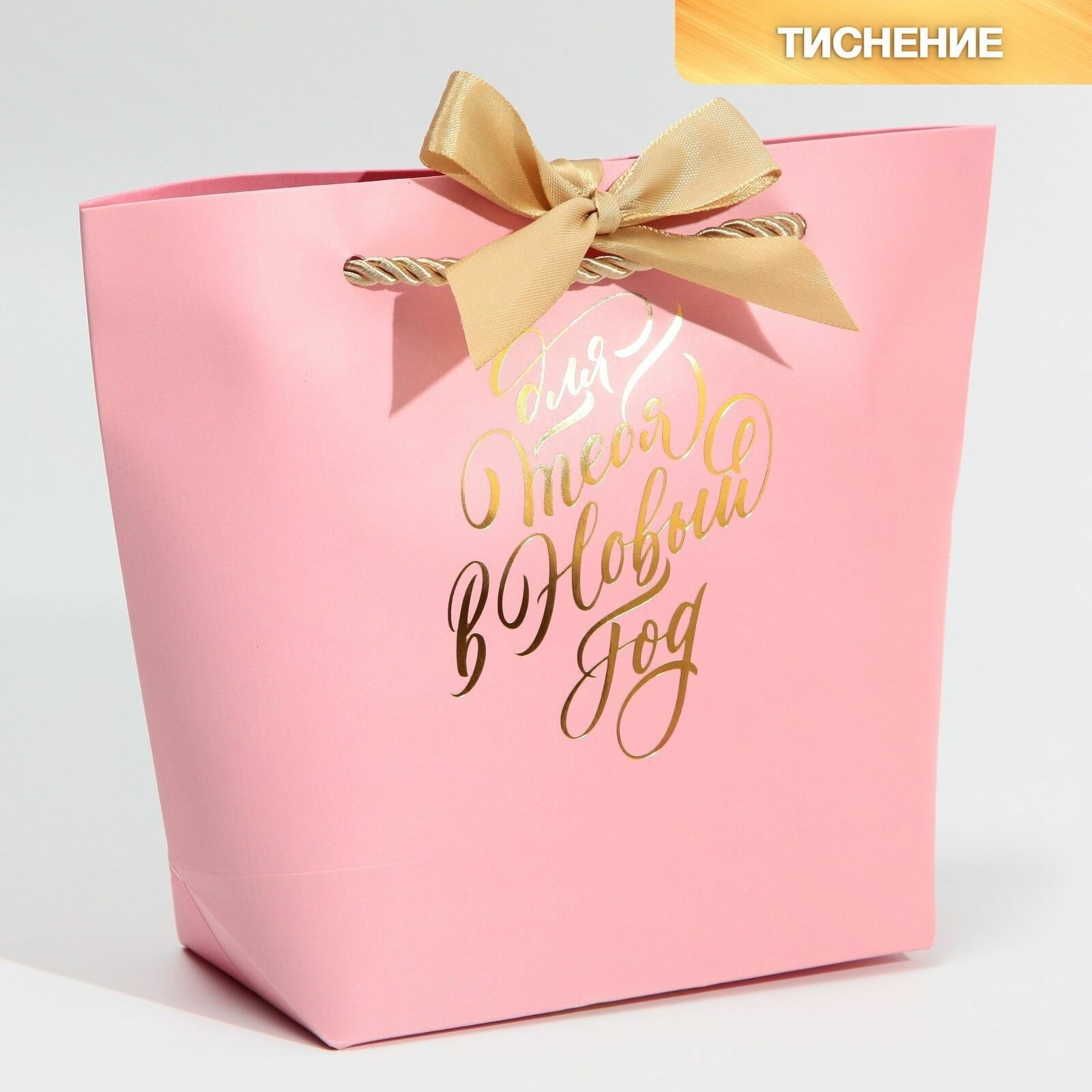 Пакет подарочный «Самой», 19 х 20 х 9 см, розовый, лента в комплекте 169 ₽