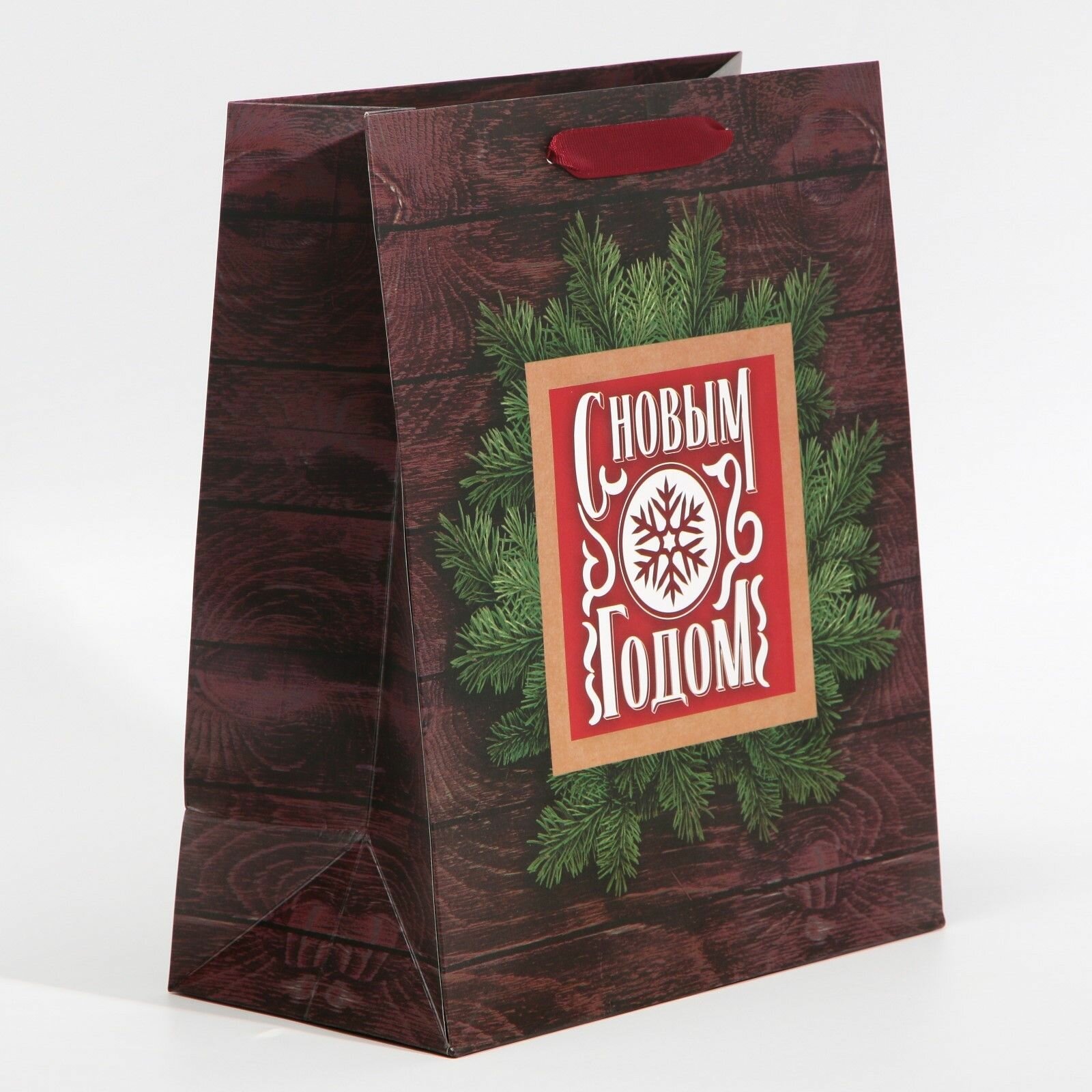 Подарочный пакет новогодний ламинированный, ML 23 х 27 х 11.5 см, «С Новым годом!», для упаковки подарка 170 ₽