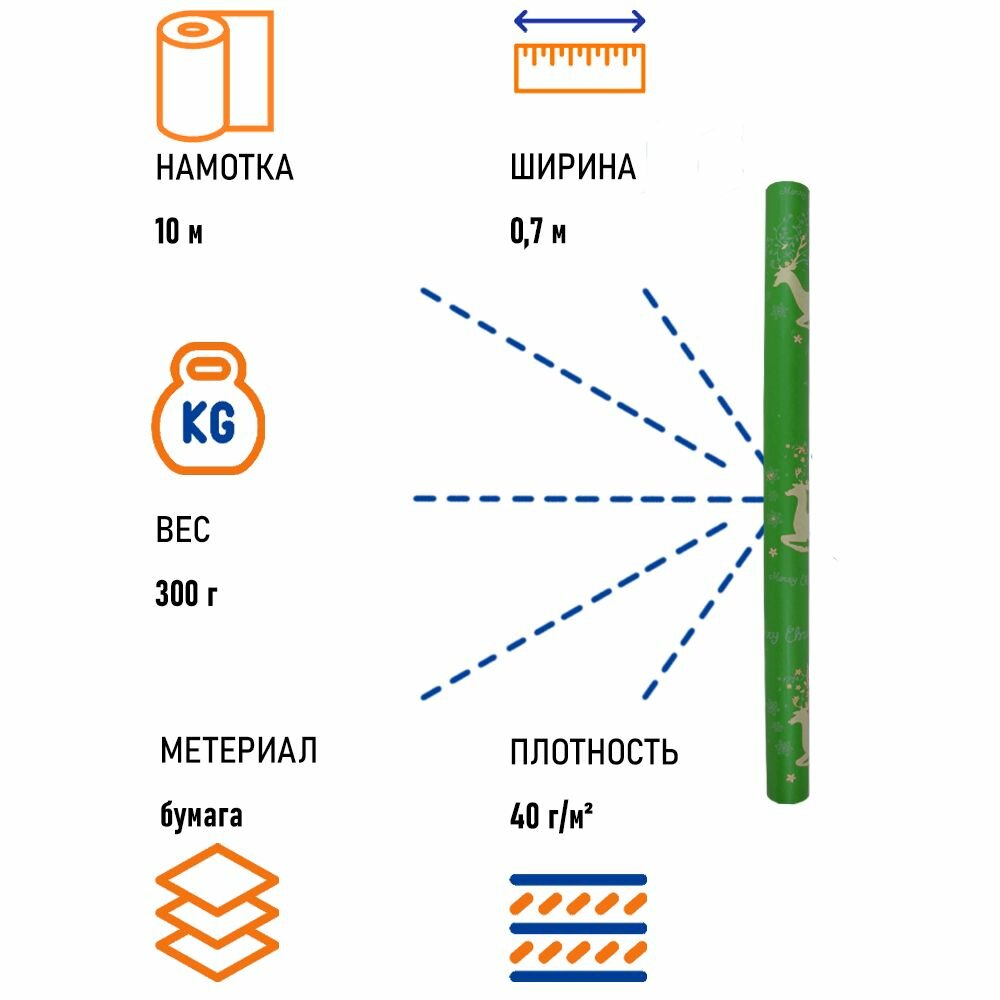 Бумага крафт "Олени" RussCarton, зеленый, 0.7х10 м, 1 шт в упаковке. информация:
