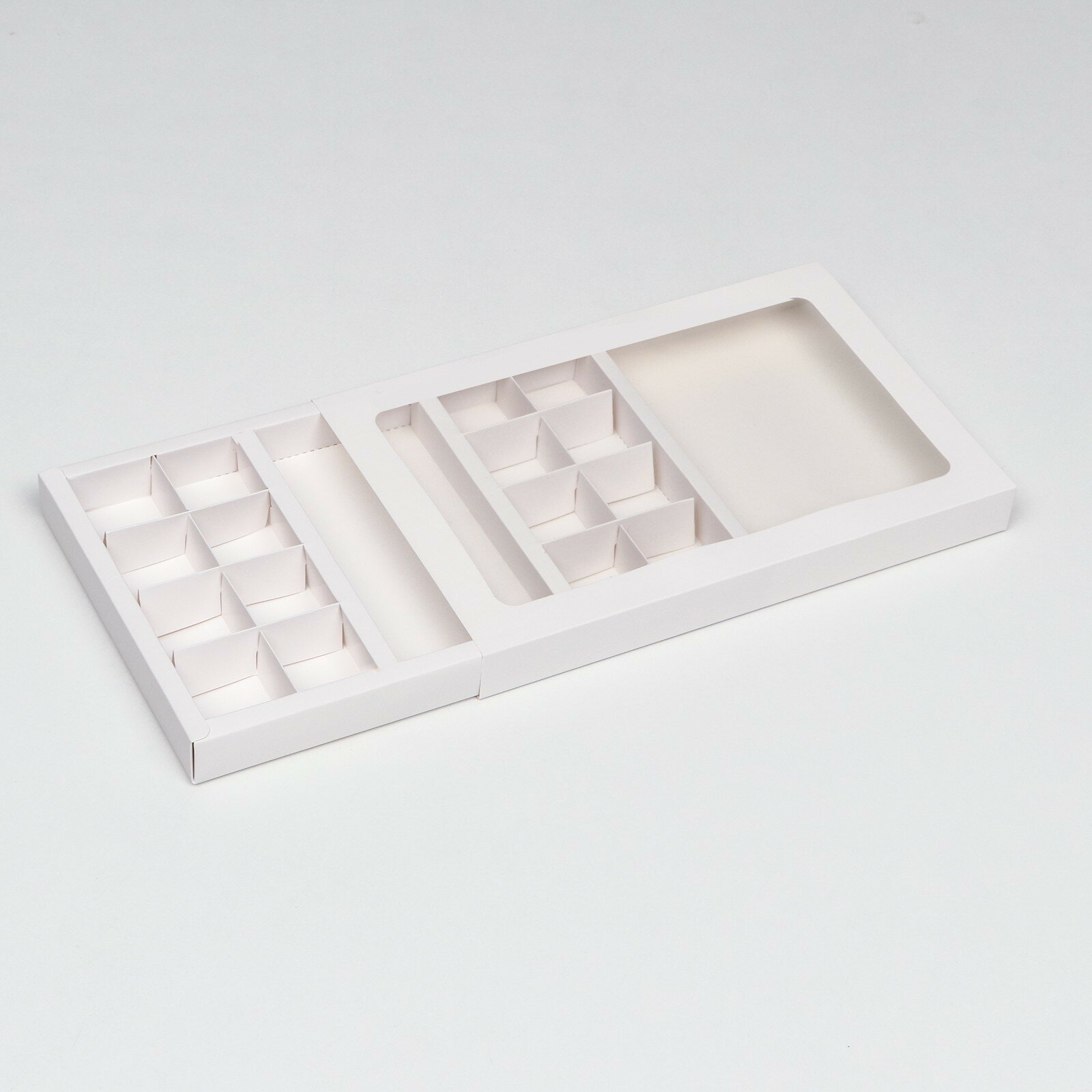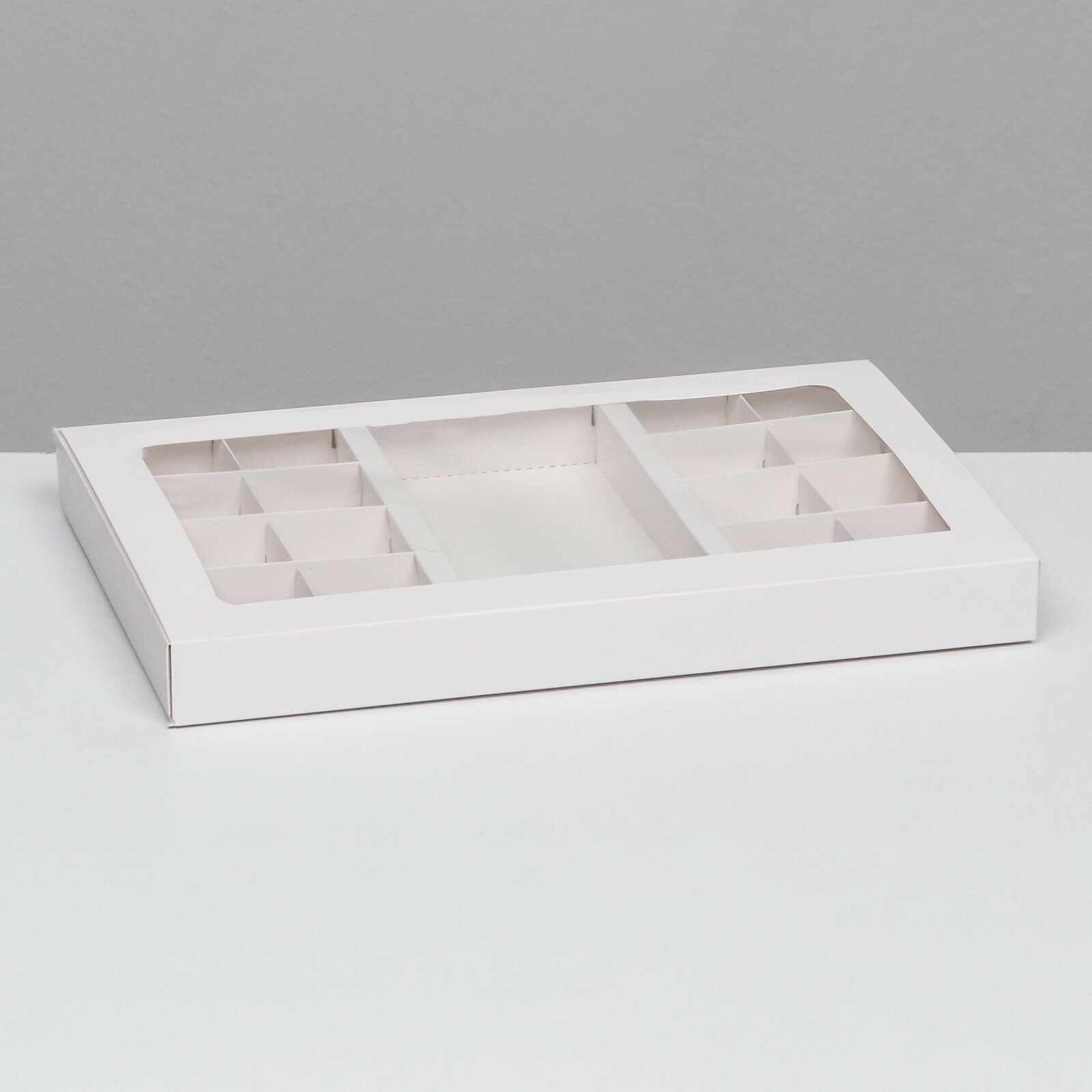 Коробка по 8 + 8 конфет + шоколад, с окном, белая 30 х 19,5 х 3 см, 9259482 информация: