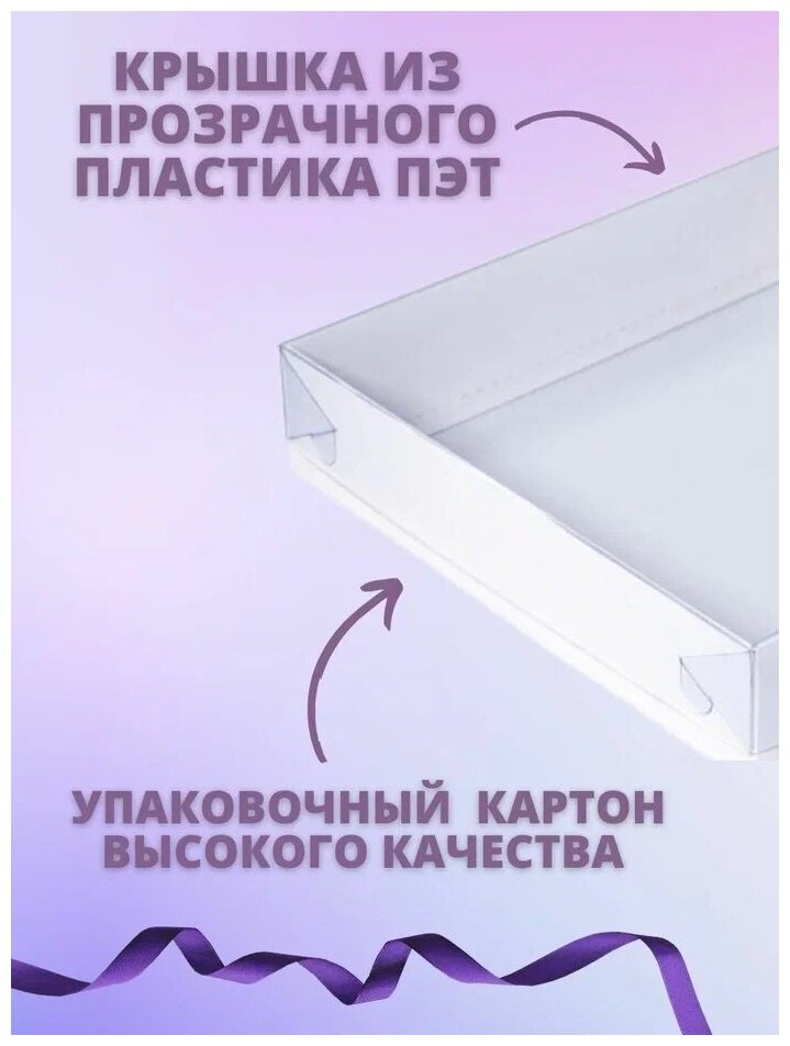 Коробка кондитерская для десертов белая с прозрачной крышкой 20 x 10 x 2,5 см