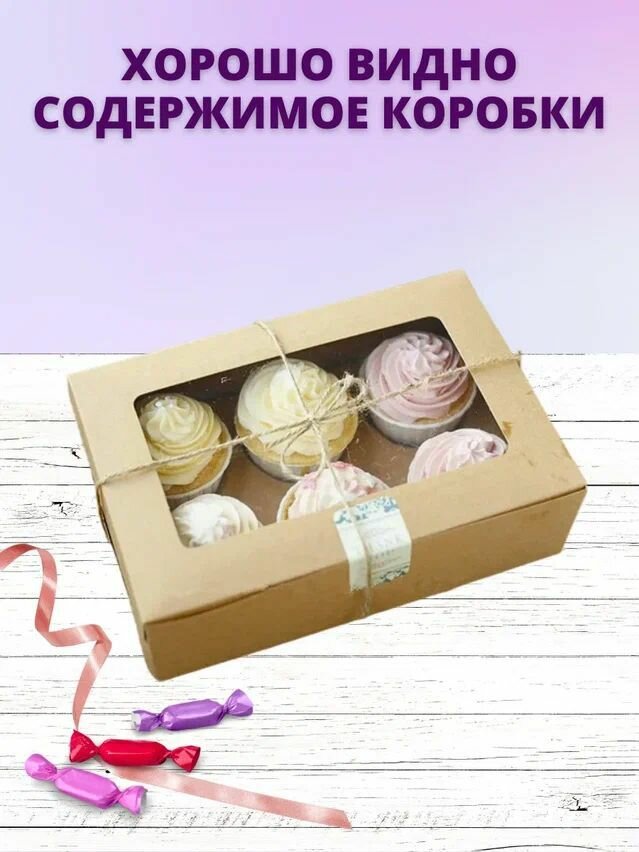 Коробка для 6 капкейков с прозрачной крышкой ПЭТ 24 x 17 x 8 см набор 10 шт 918 ₽