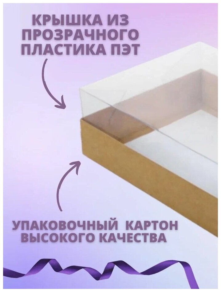 Коробка кондитерская для десертов крафт с прозрачной крышкой 20 x 10 x 2,5 см информация: