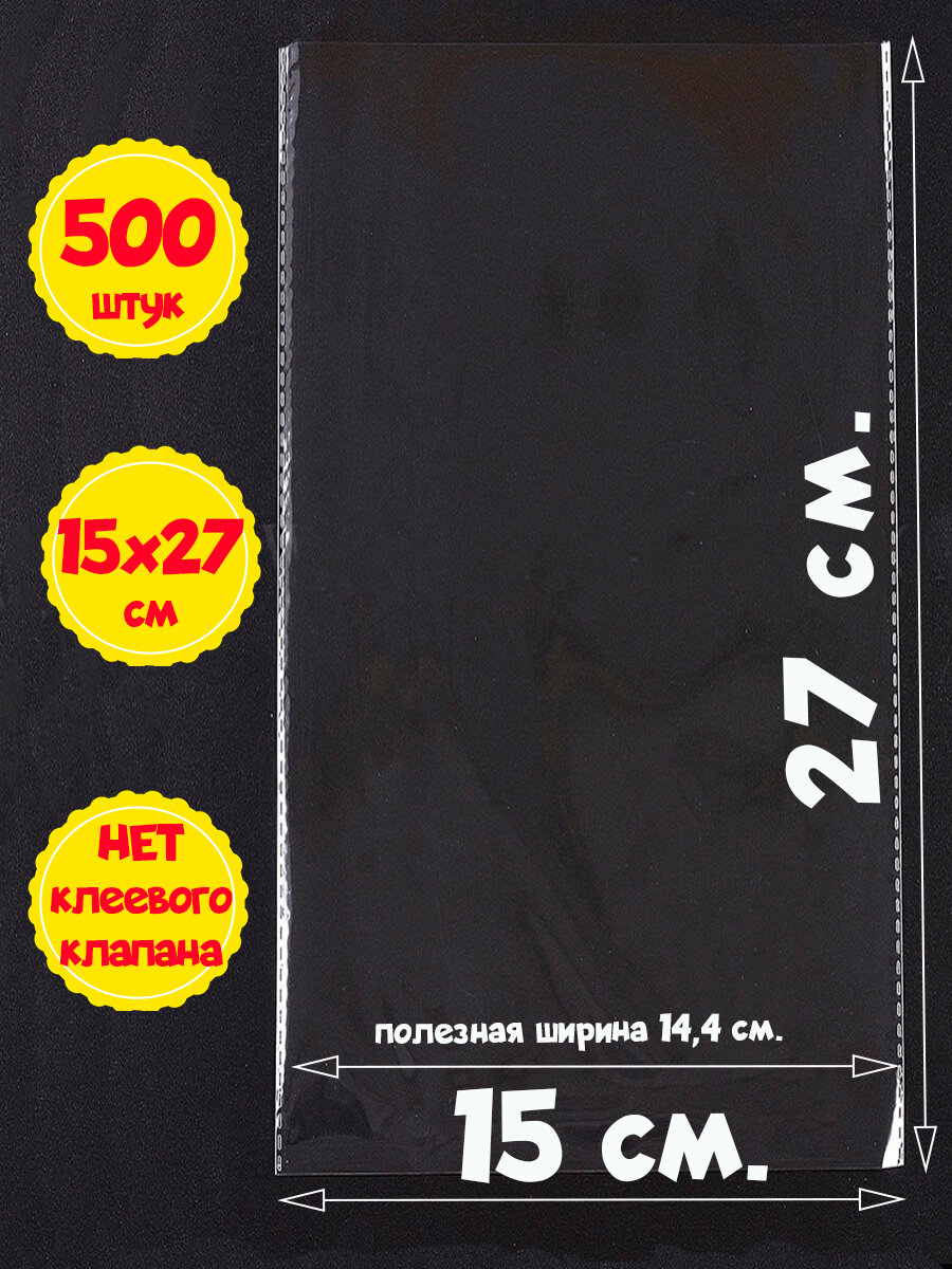 500 пакетов 15х27 см (внутр. размер 14,4х27 см) без клеевого клапана усиленные швы для упаковки информация: