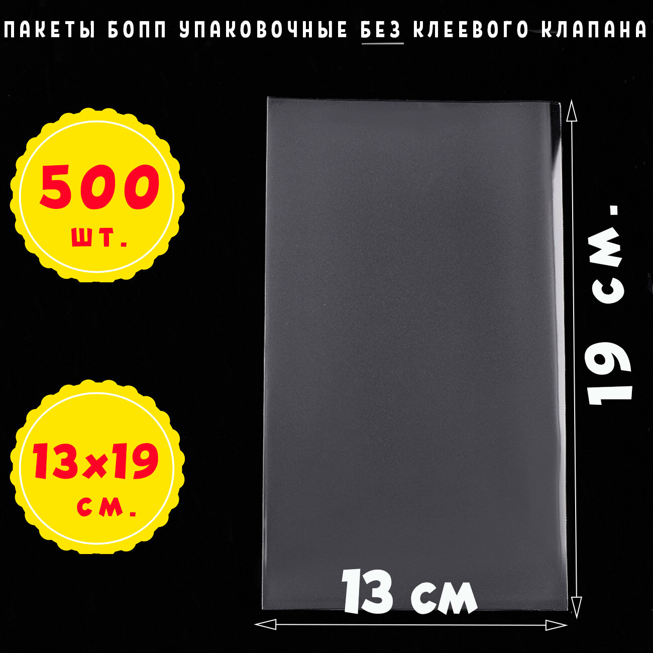 500 пакетов 13х19 см бопп прозрачных без клеевого клапана для упаковки информация: