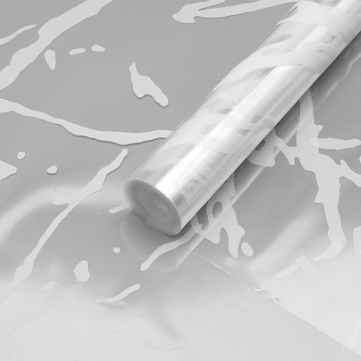 Пленка упаковочная для цветов и подарков прозрачная Айрис 'Мрамор', белая, 70 см*9,14 м информация: