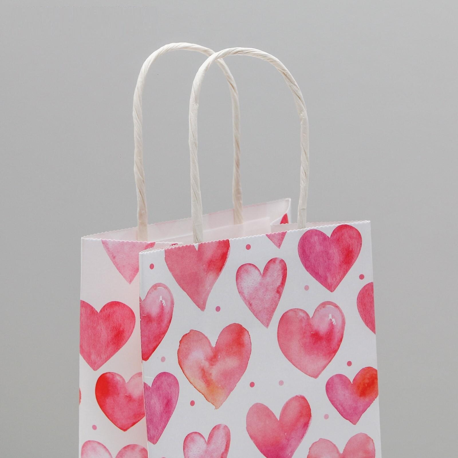 Подарочный пакет Riota "Сердечки", прямоугольный, 39x27x17 см