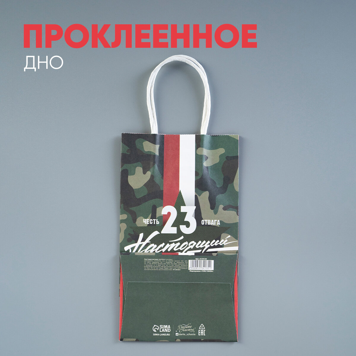 Пакет подарочный «С 23 февраля», 12 х 21 х 9 см, крафтовый, для упаковки подарка 123 ₽