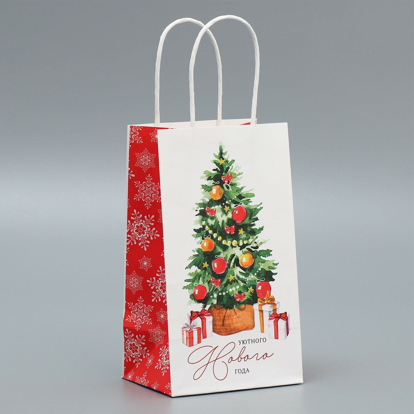 Пакет подарочный новогодний «Уют в доме», 12 х 21 х 9 см, крафтовый, для упаковки подарка на Новый год информация: