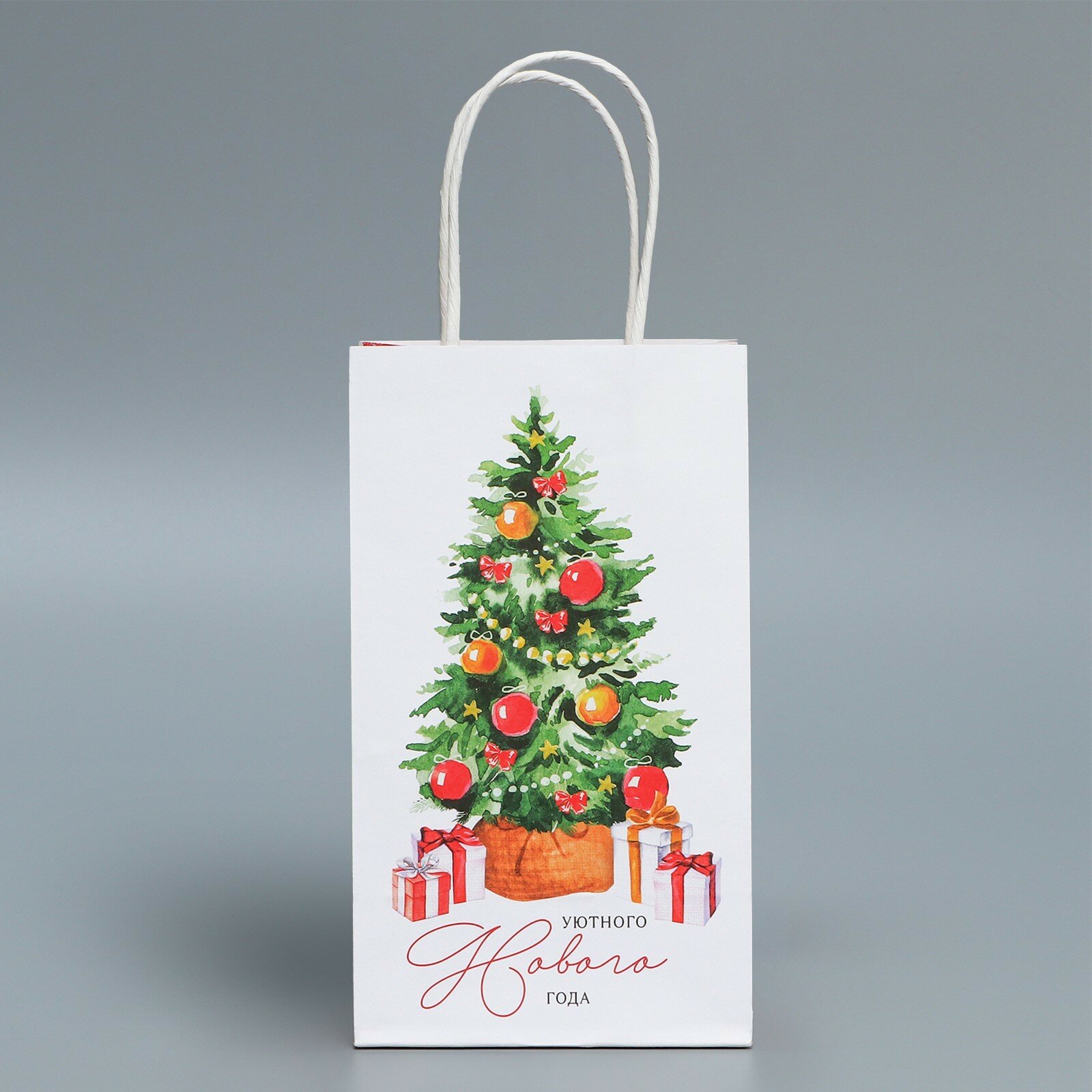 10 цен на Пакет подарочный новогодний «Уют в доме», 12 х 21 х 9 см, крафтовый, для упаковки подарка на Новый год