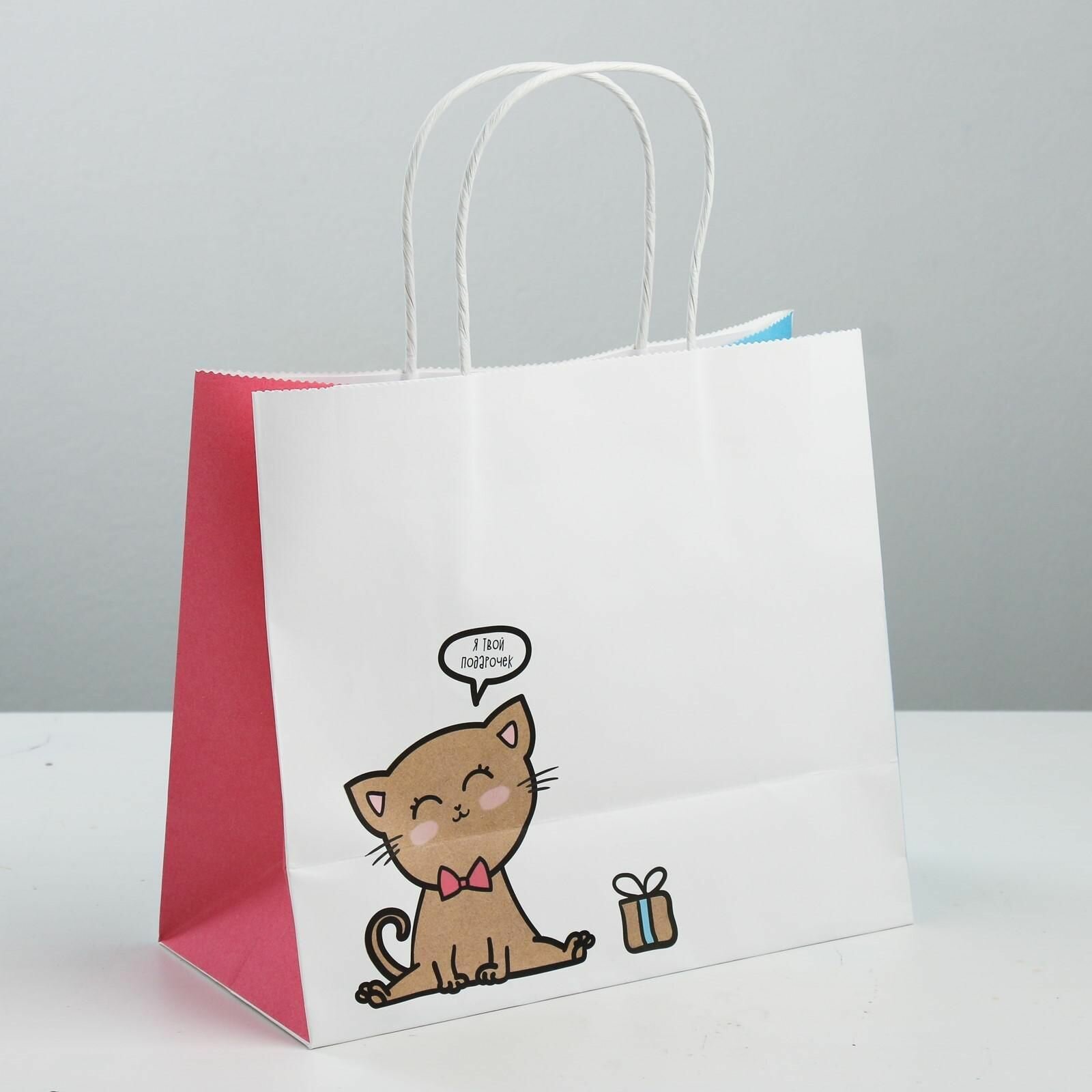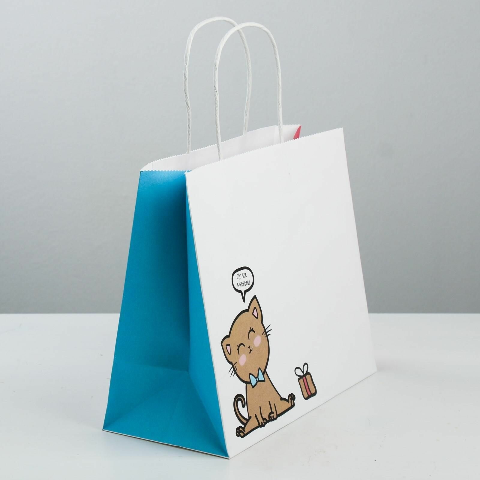 10 цен на Пакет подарочный крафтовый, упаковка, Котик , 25 х 22 х 12 см