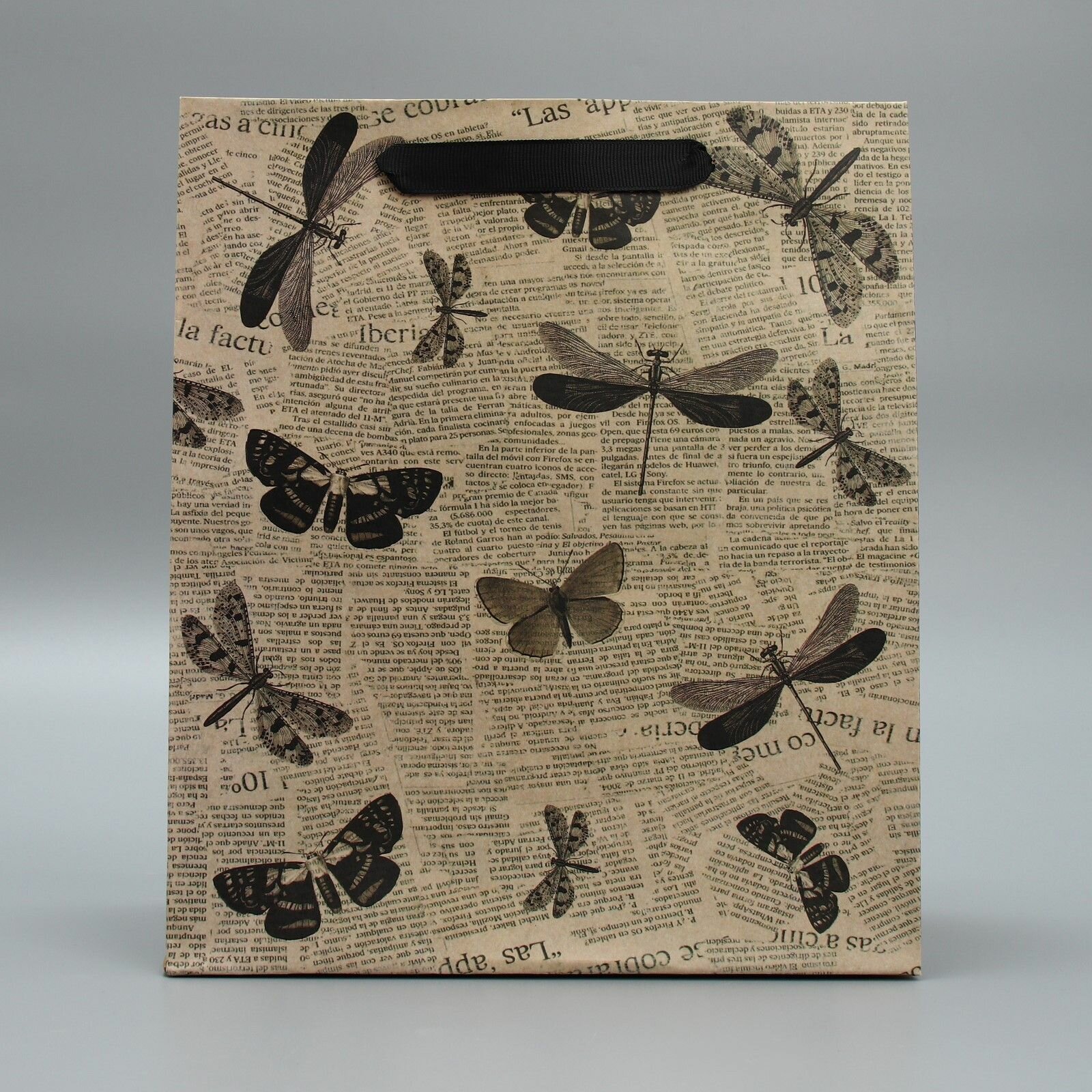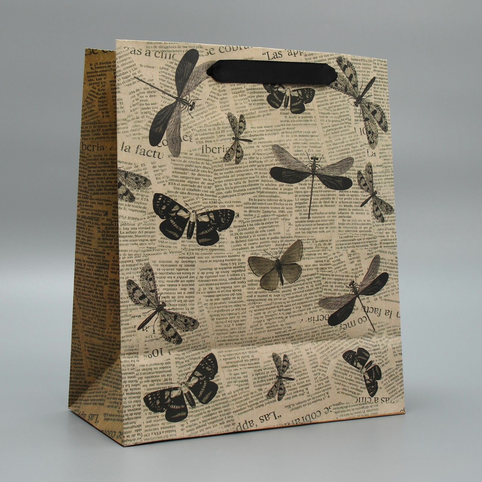 Пакет подарочный крафтовый вертикальный, упаковка, Бабочки , 23 х 27 х 11,5 см информация: