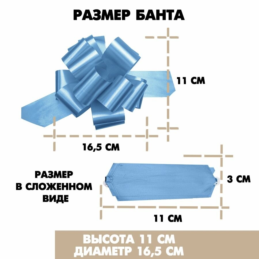 Бант подарочный "Шар" 16,5 см, голубой, 20 шт. / Набор бантов информация:
