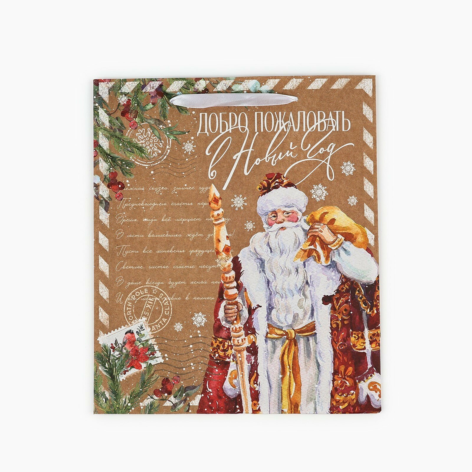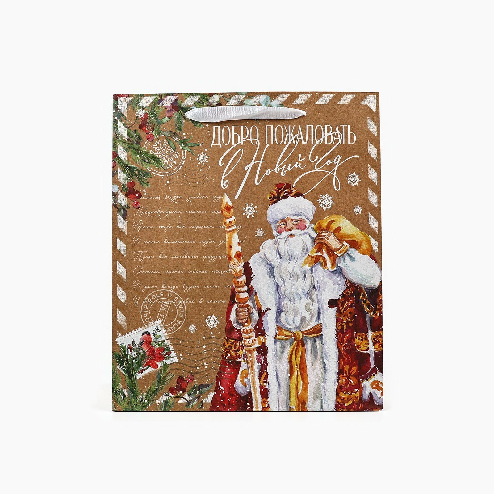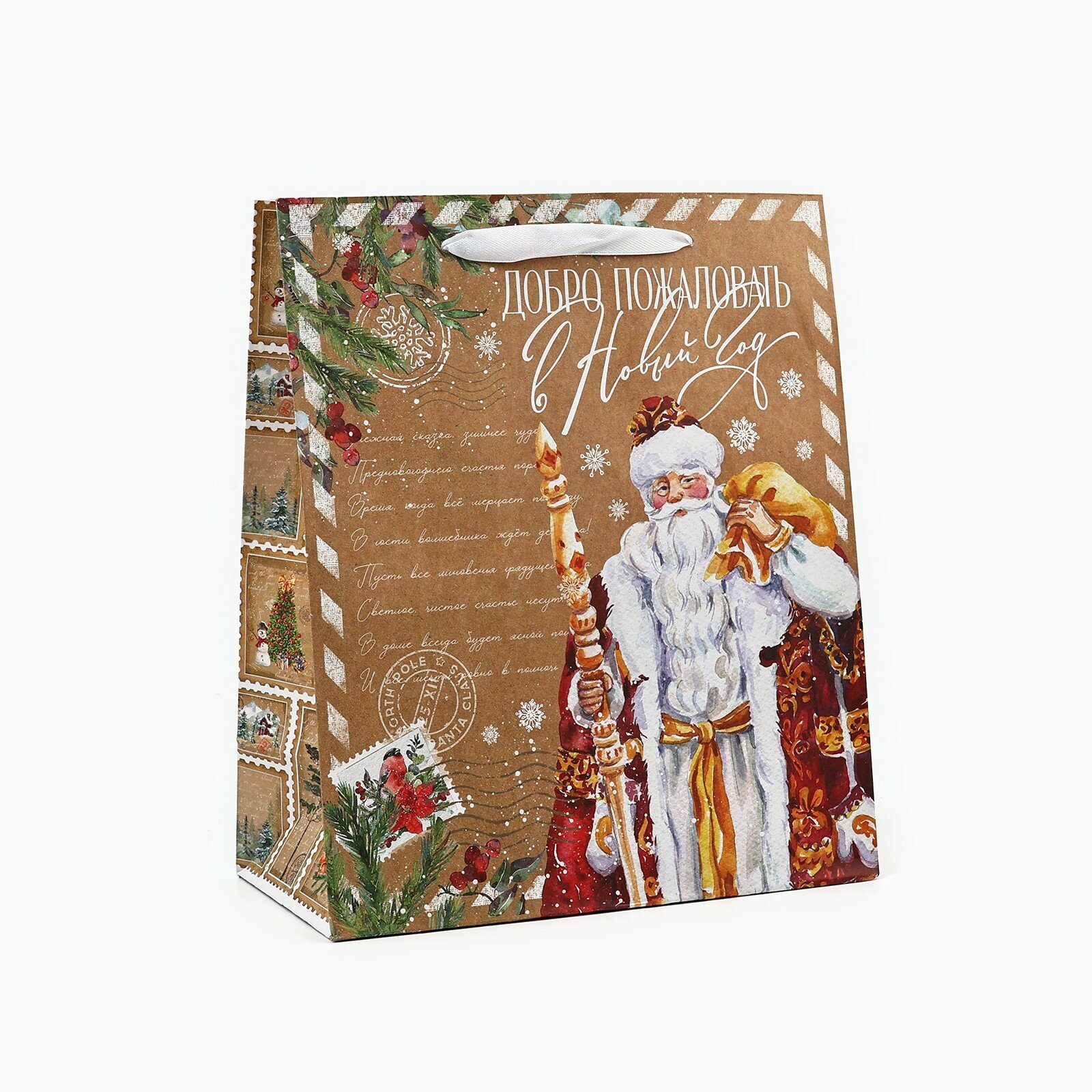 Пакет подарочный новогодний крафтовый «Добро пожаловать в Новый год», ML 23 х 27 х 11.5 см, для упаковки подарка информация: