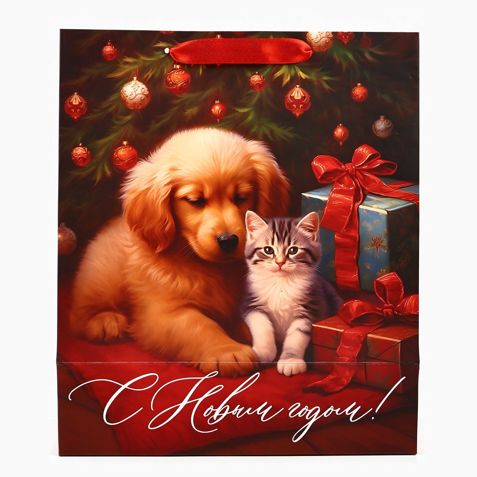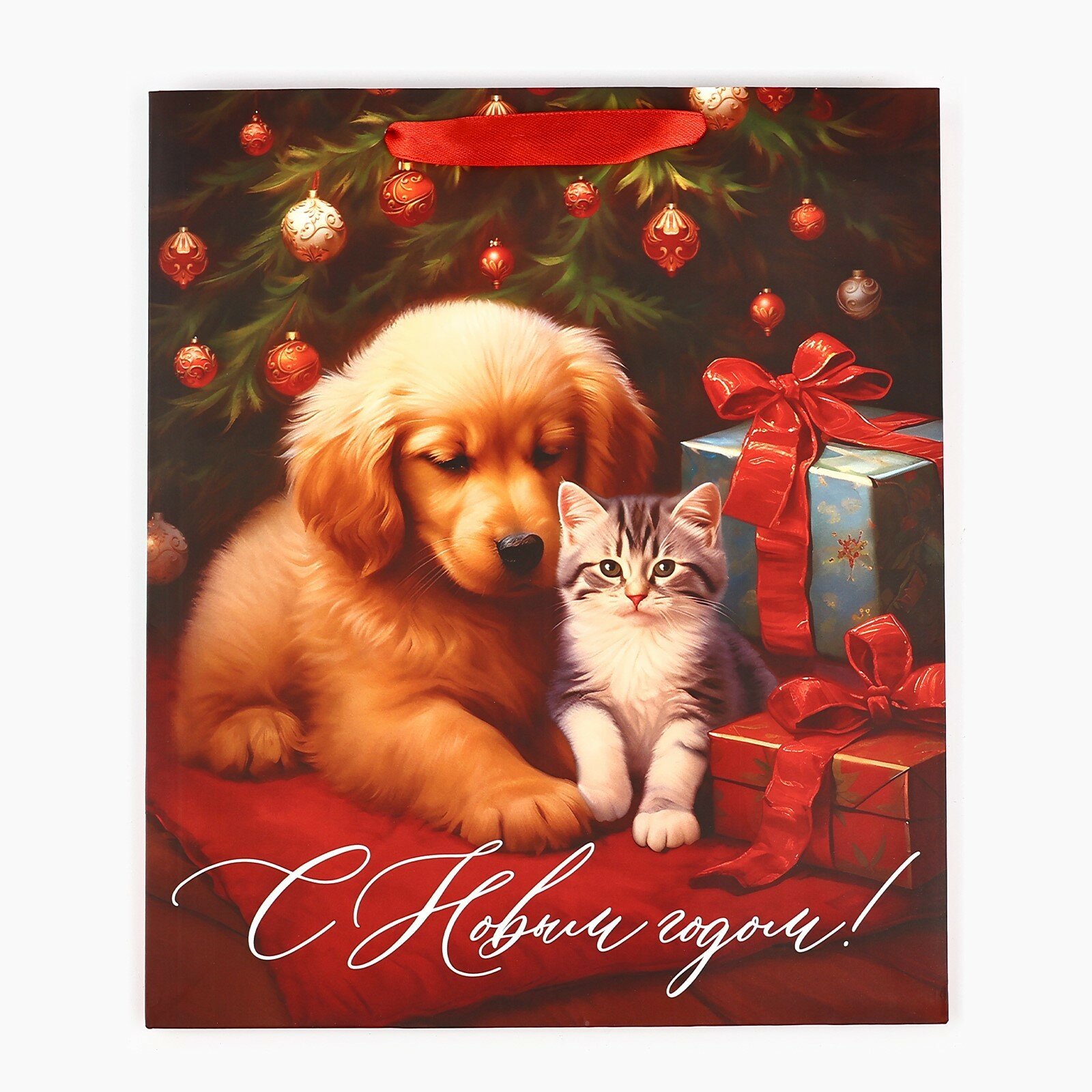 10 цен на Пакет подарочный новогодний «С Новым годом», ML 23 х 27 х 11.5 см, для упаковки подарка на Новый год.
