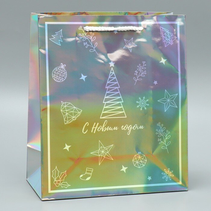 Подарочный пакет голографический «Подарочек», ML 23 х 27 х 11.5 см, для упаковки подарка на Новый год. информация: