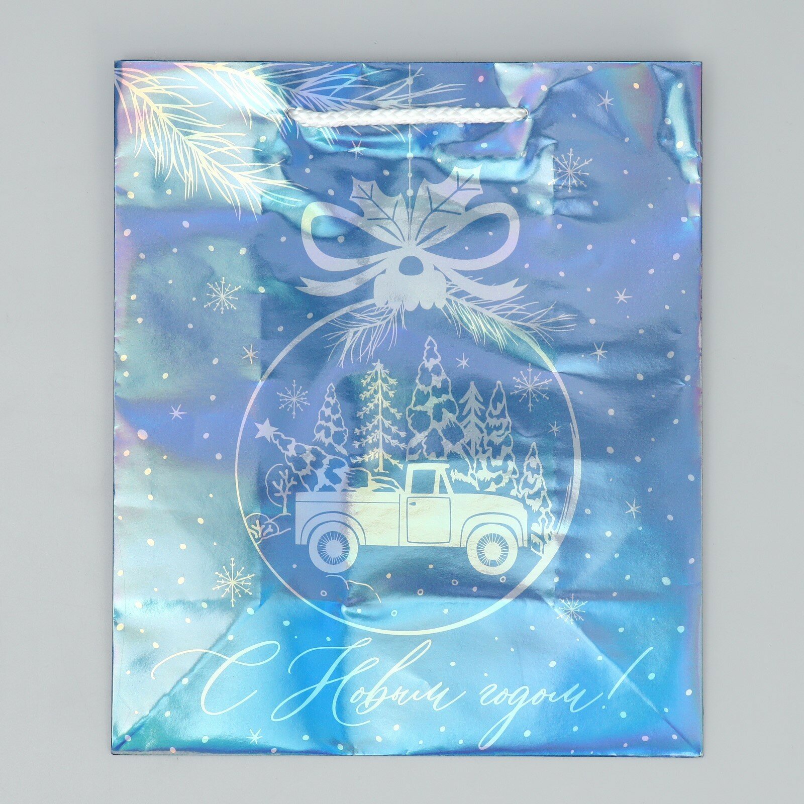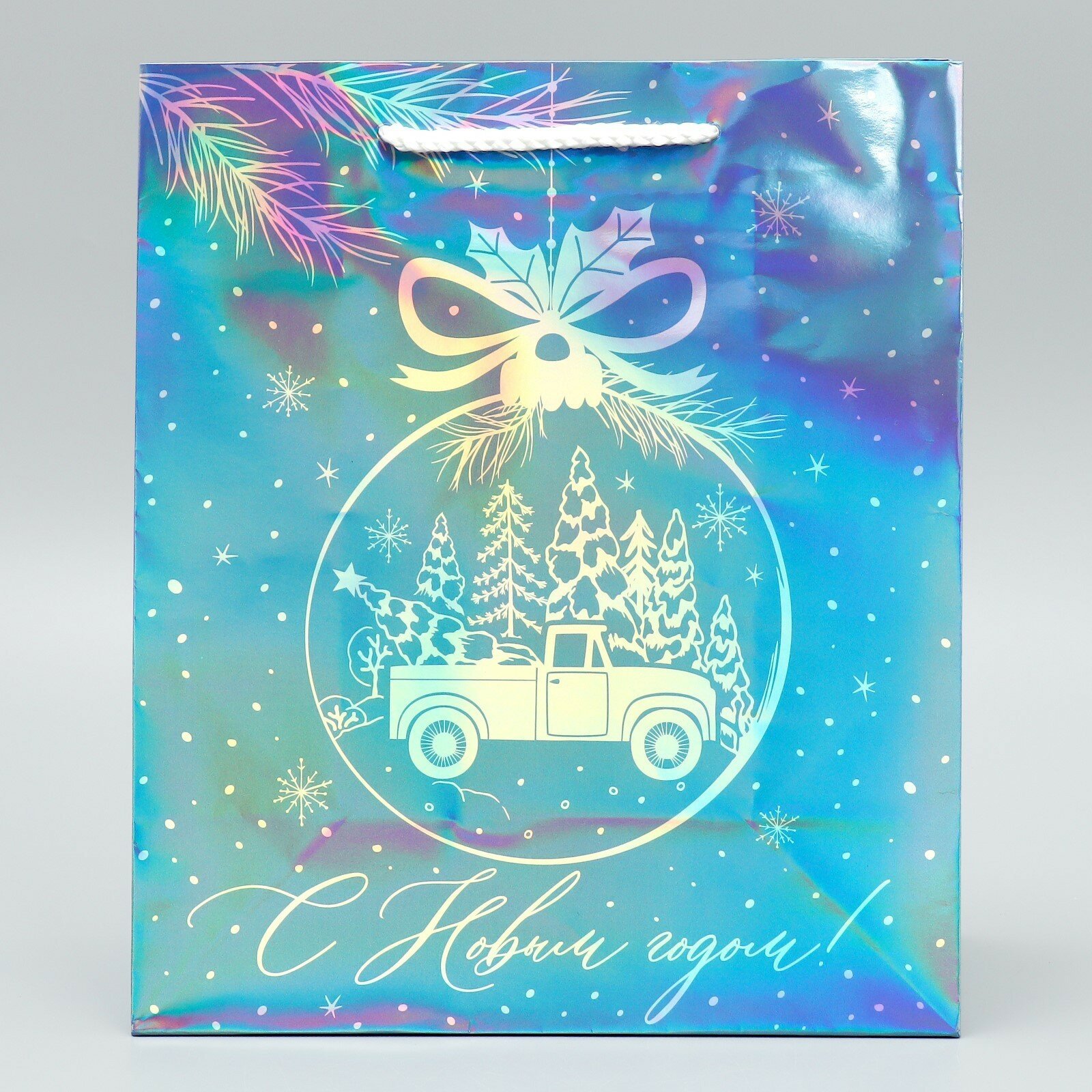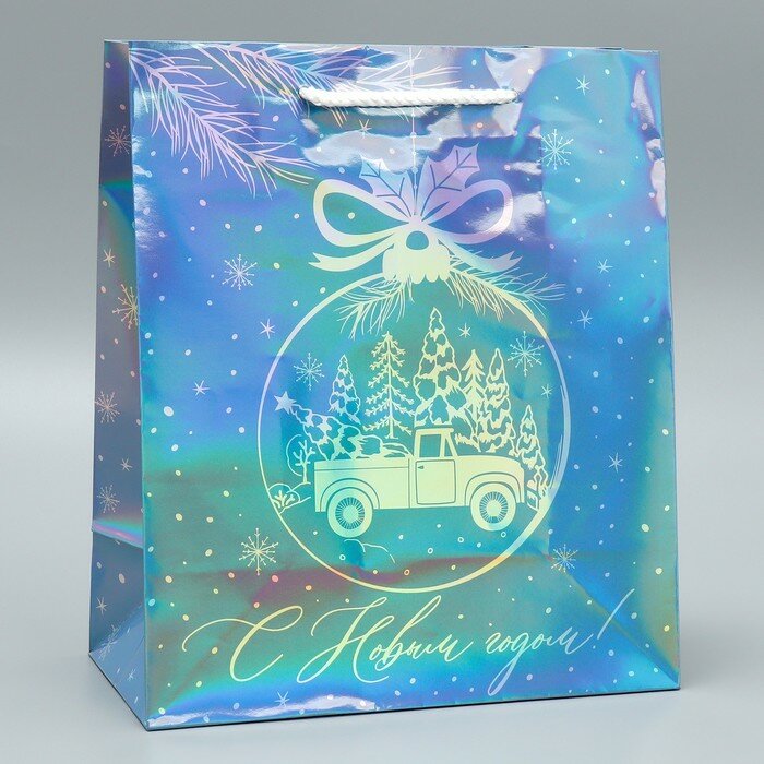 Подарочный пакет голографический «Подарочек», ML 23 х 27 х 11.5 см, для упаковки подарка на Новый год. 144 ₽