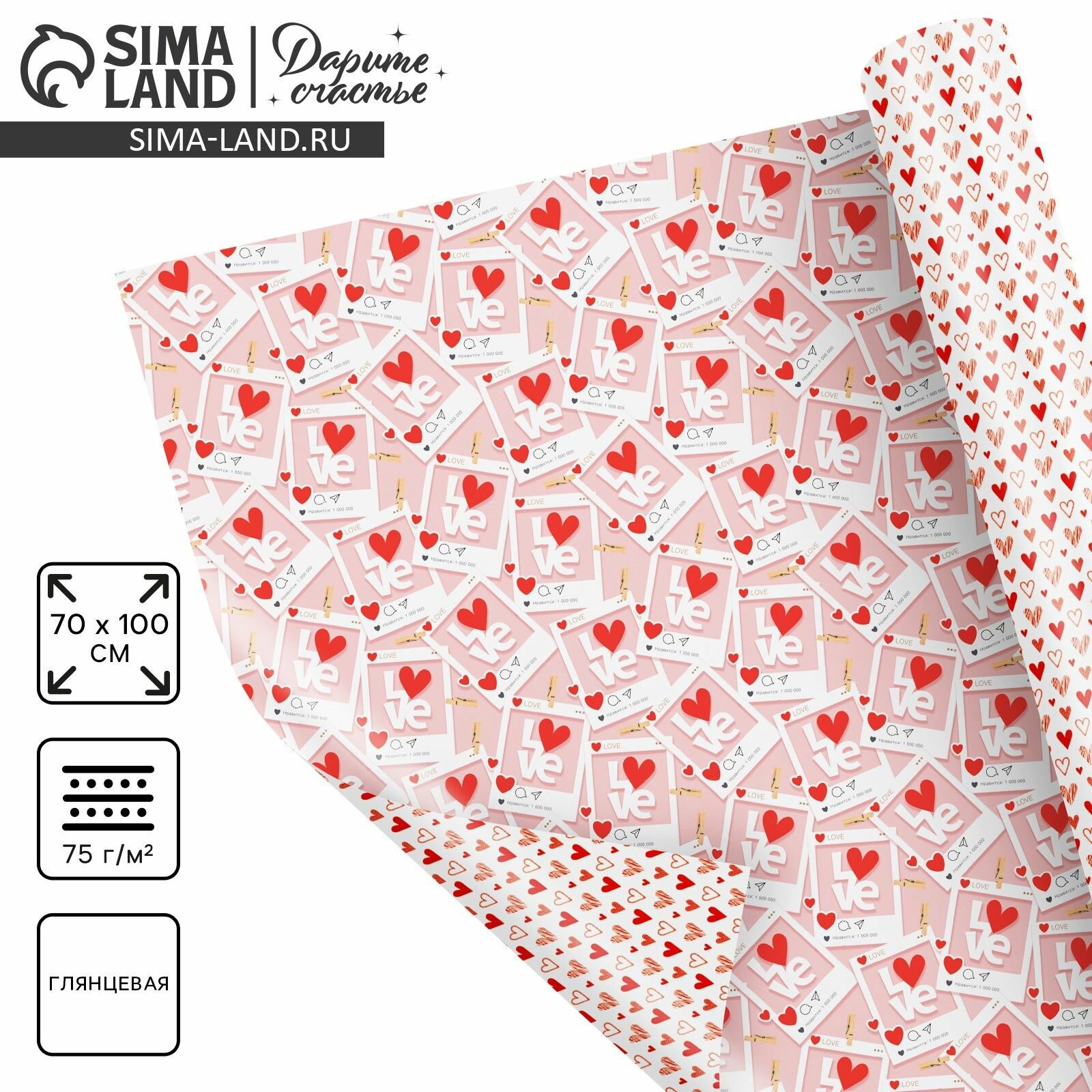 10 цен на Бумага упаковочная глянцевая двухсторонняя Там, где живёт любовь , 70 х 100 см