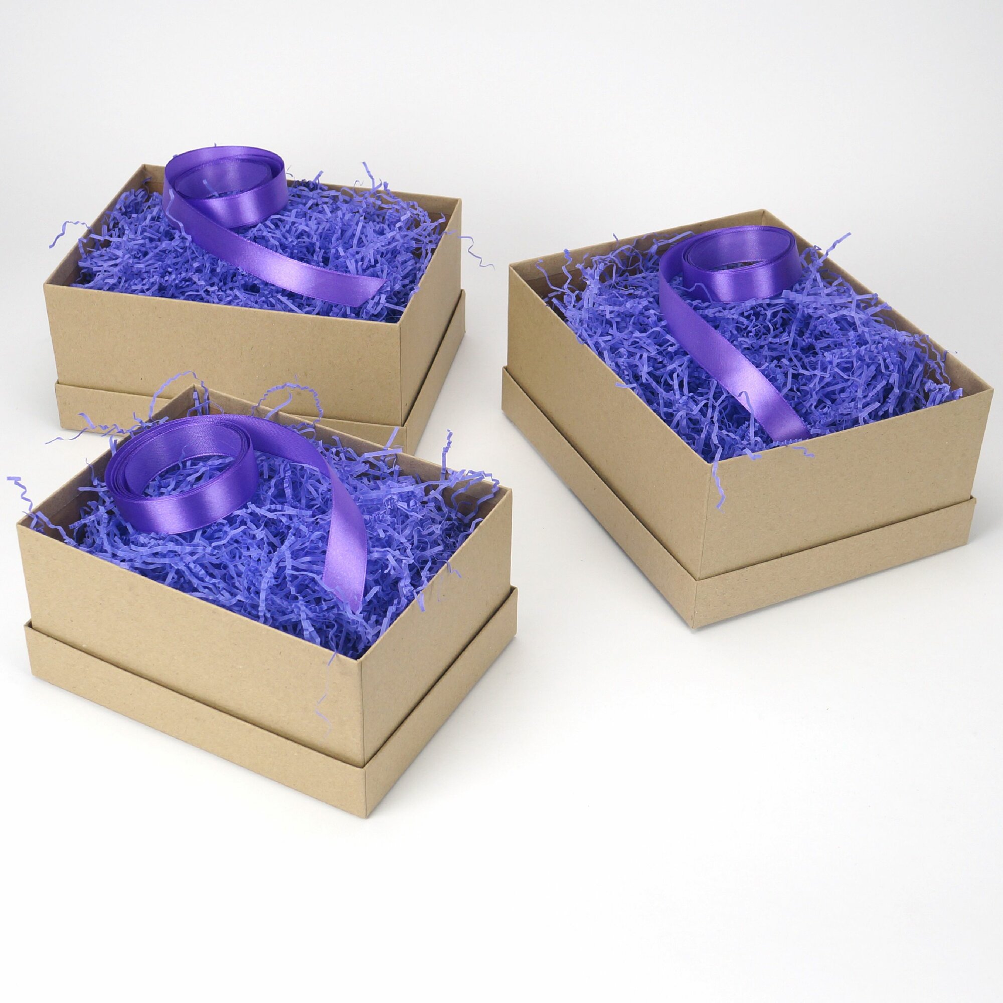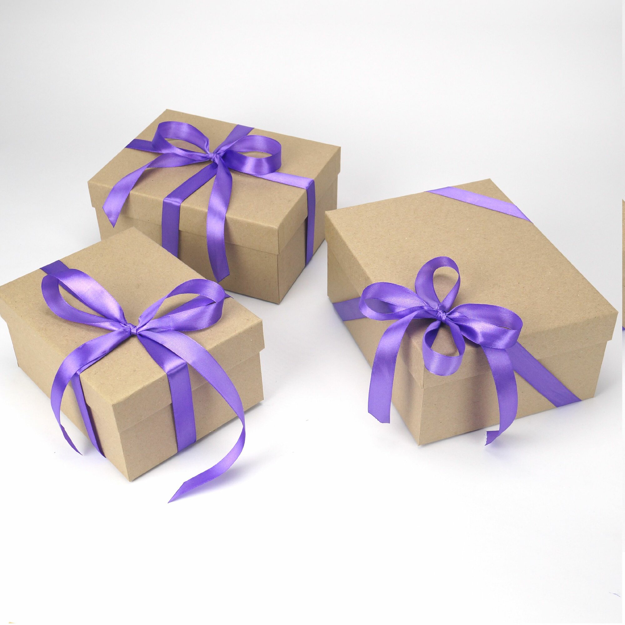 10 цен на Набор подарочной упаковки: 3 крафт-коробки для подарков с бумажным наполнителем и атласной лентой лилового цвета