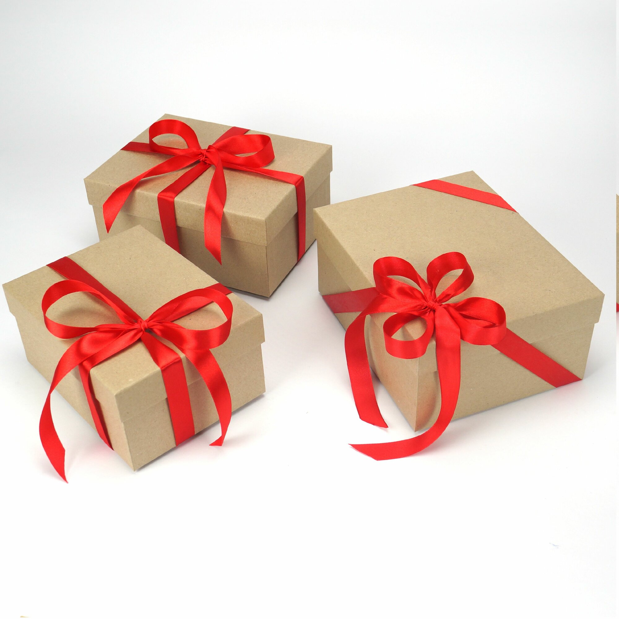 Отзывы на Подарочные коробки картонные с наполнителем и атласной лентой красного цвета, 3 штуки