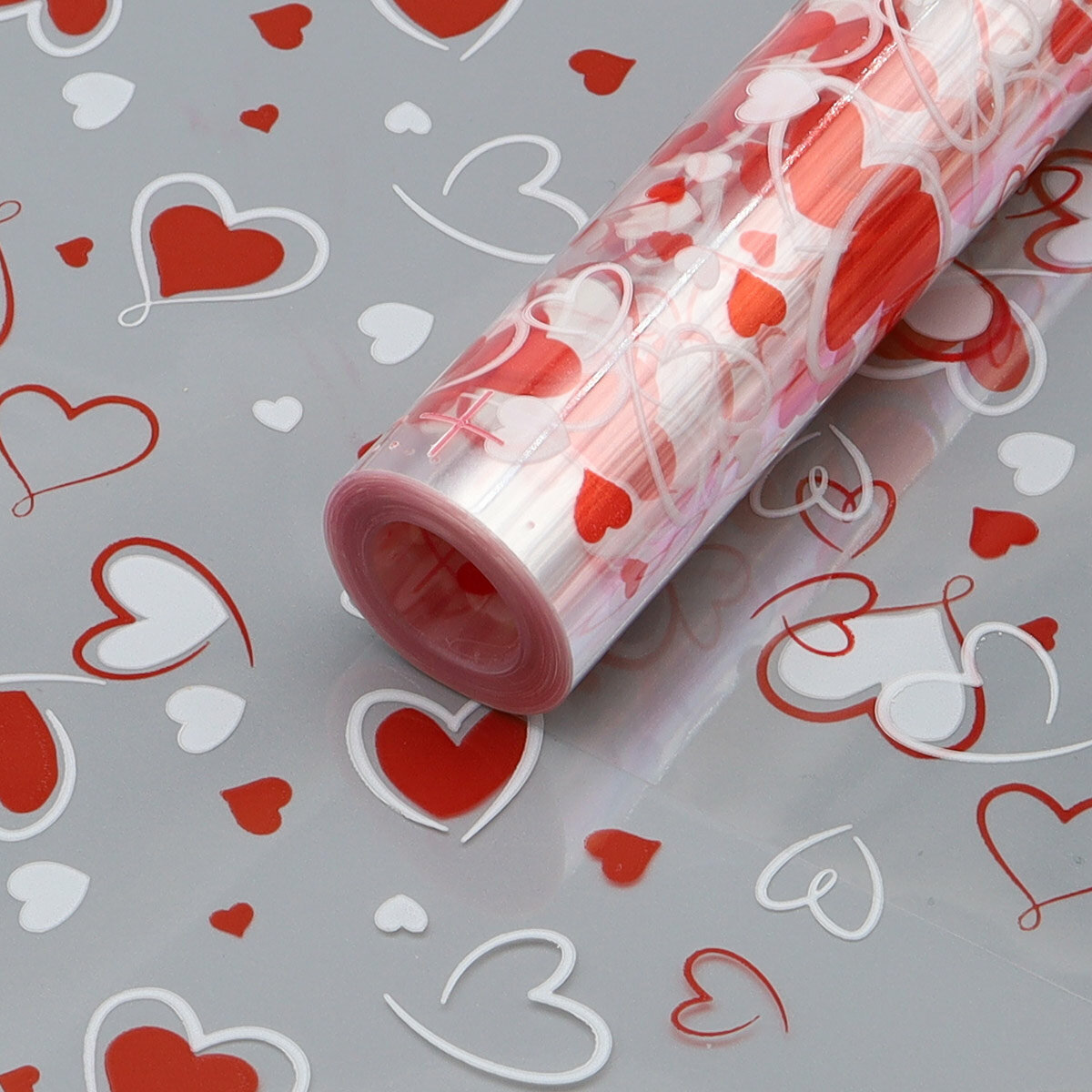 10 цен на Пленка упаковочная для цветов и подарков прозрачная Айрис 'Сердечки' (бело-красные), двухцветная, 70 см*7,7 м, 200 г