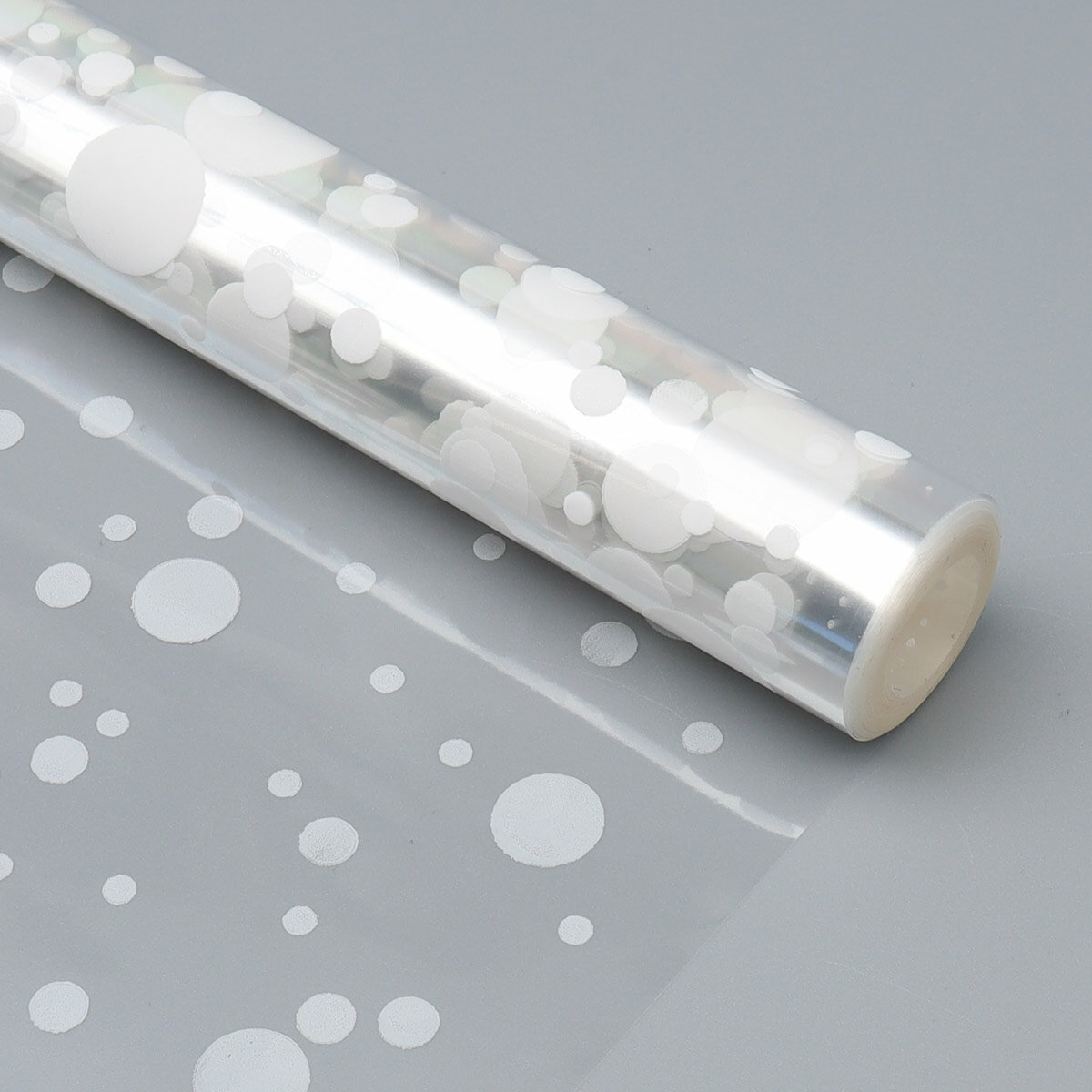 Пленка упаковочная для цветов и подарков прозрачная Айрис 'Конфетти' (белые), 70 см*7,7 м, 200 г информация: