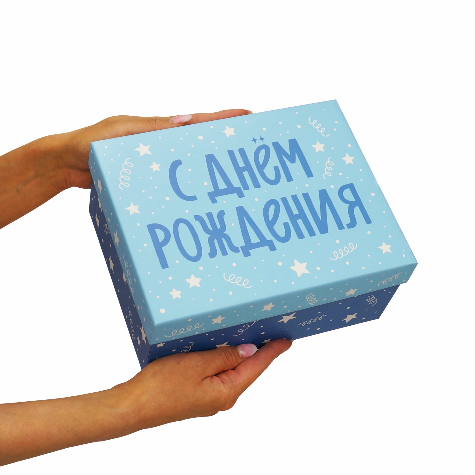 Коробка подарочная "С днем рождения", размер 22×17×10см, цвет голубой информация: