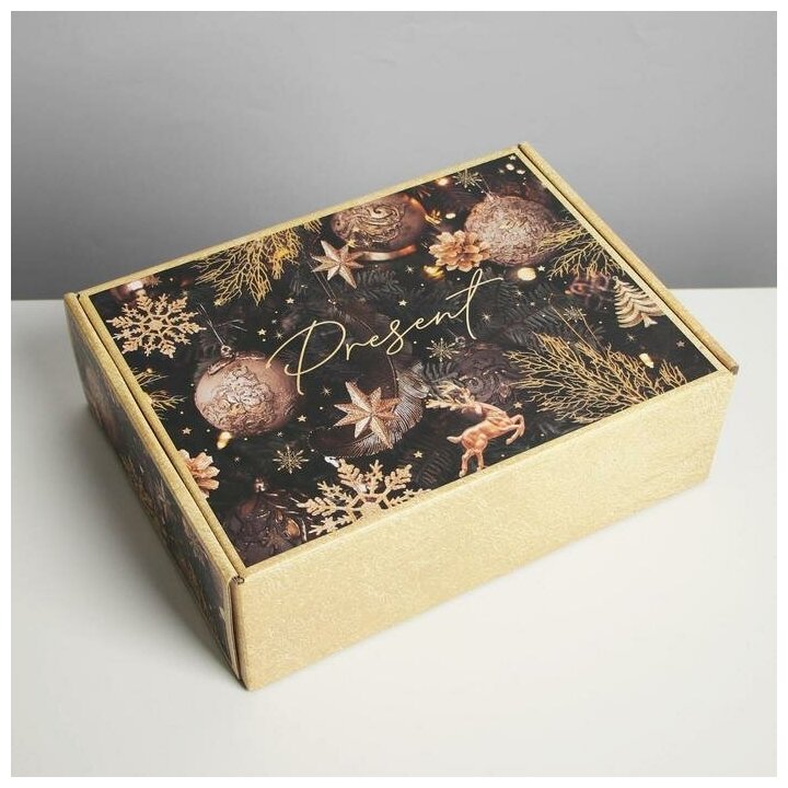 Коробка подарочная новогодняя «Present», 31 х 25 х 16 см, для упаковки подарка на Новый год