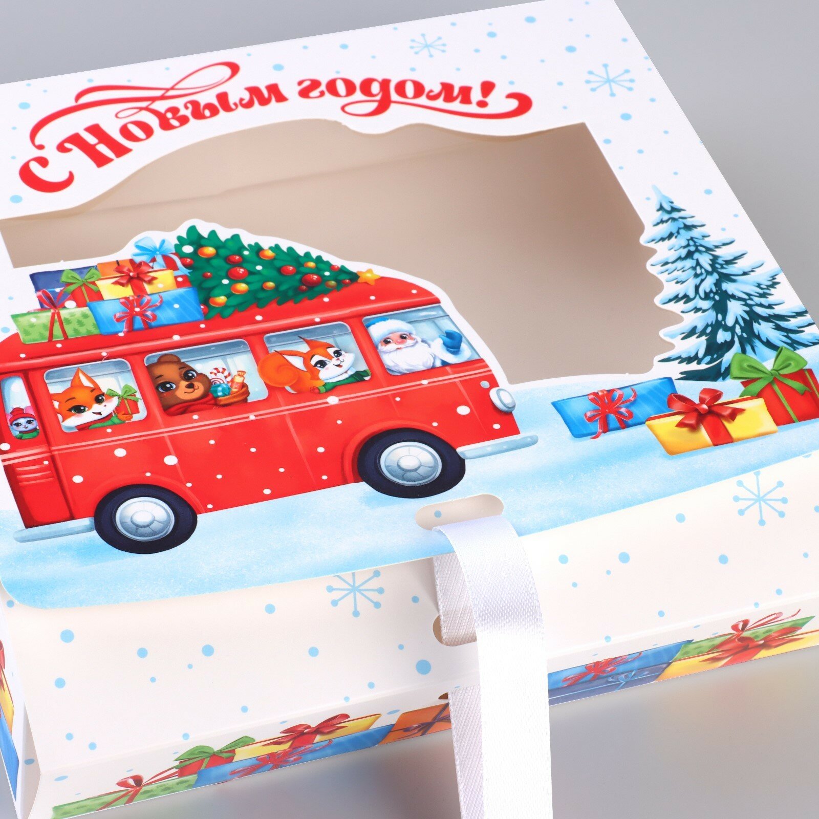10 цен на Коробка новогодняя складная «Новогодний автобус» 20 х18 х 5 см, для упаковки подарка на Новый год.