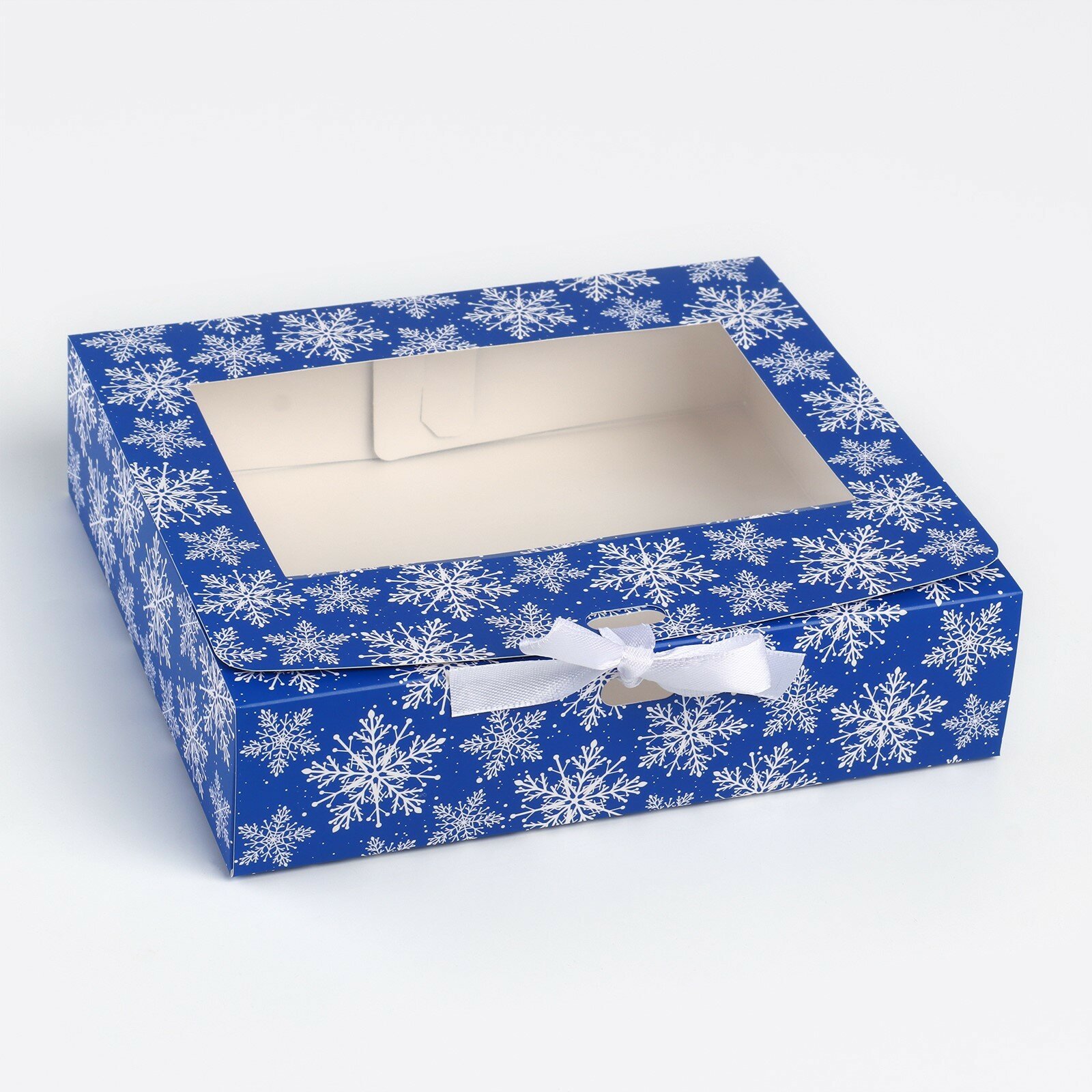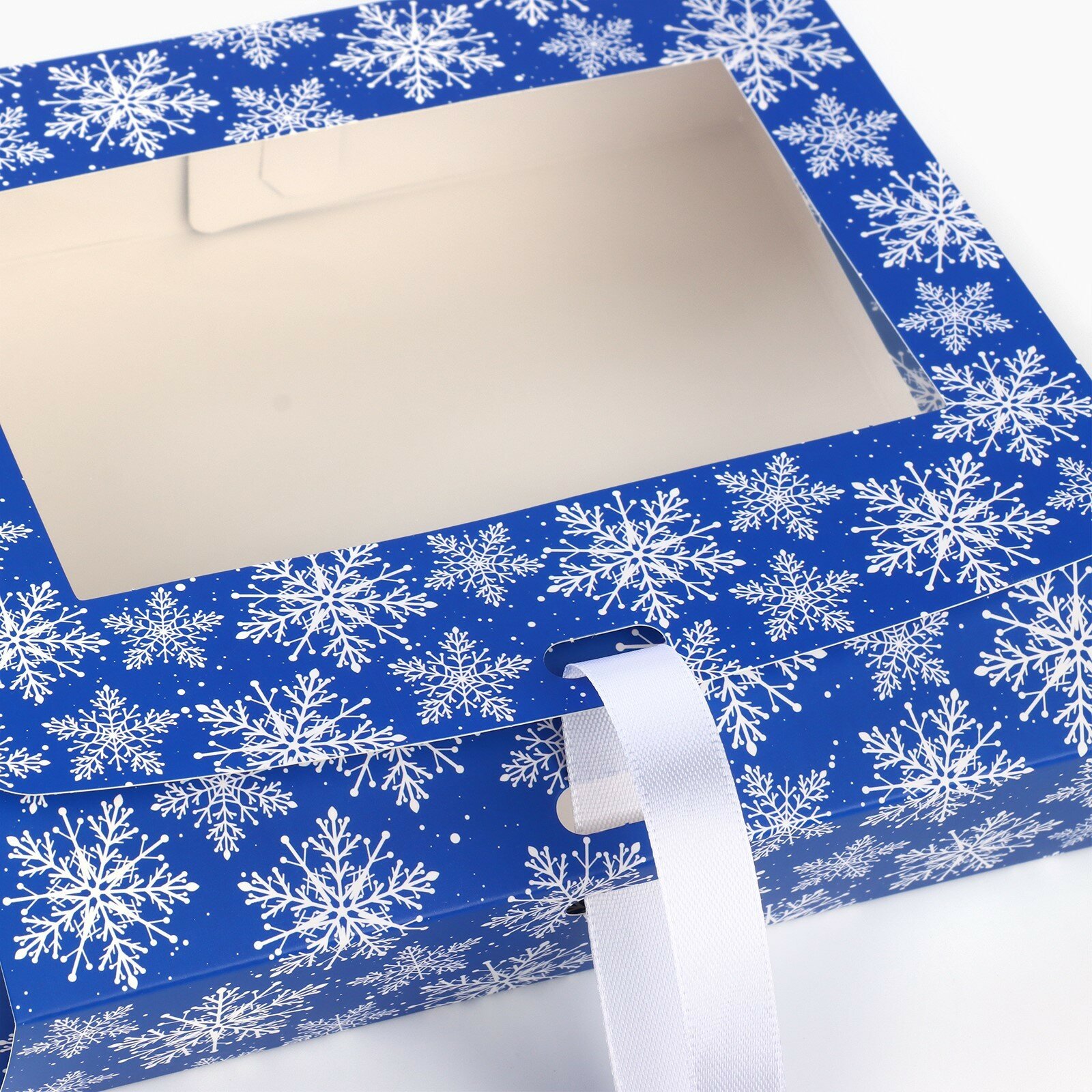 10 цен на Коробка новогодняя складная «Снежинки» 20 х18 х 5 см, для упаковки подарка на Новый год.
