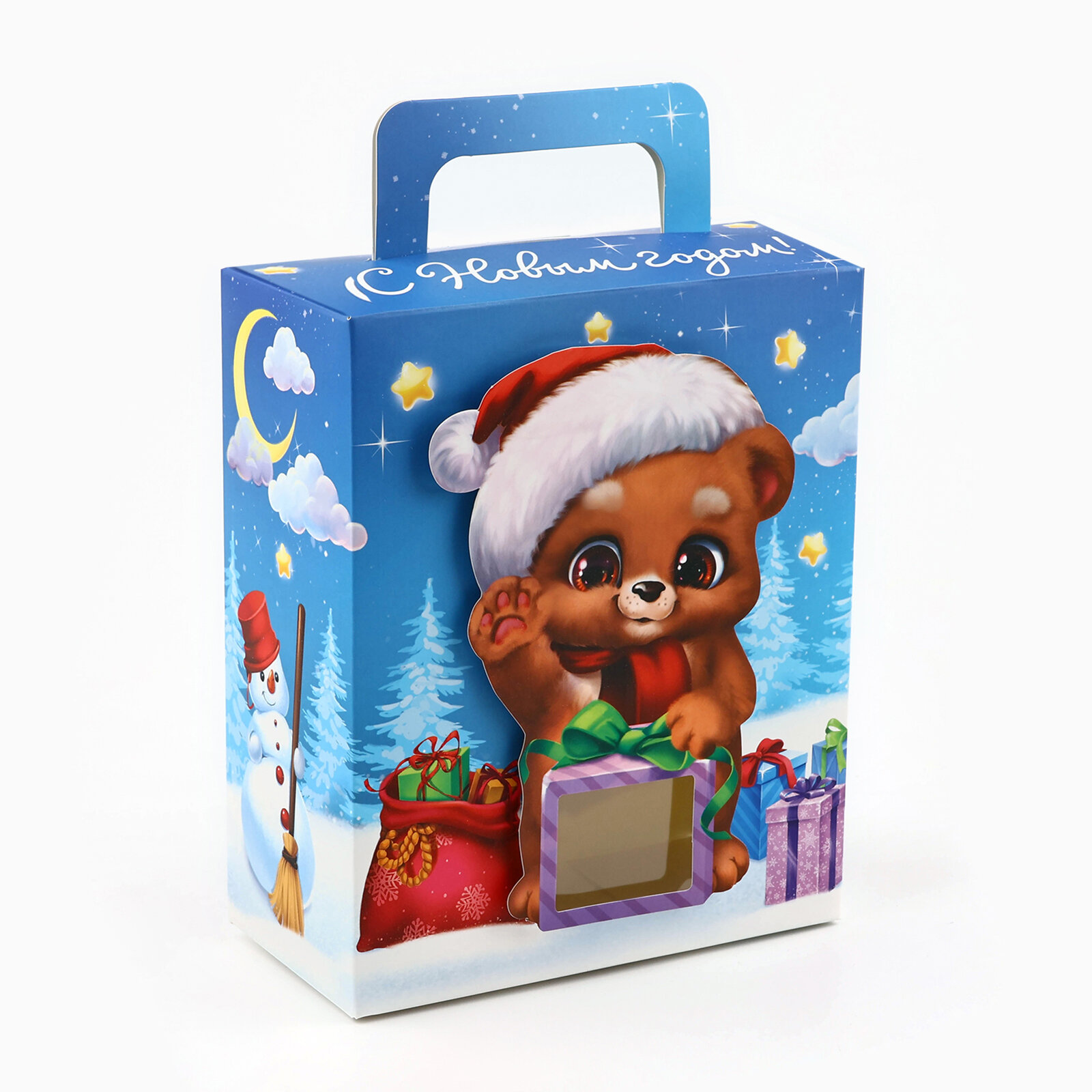10 цен на Коробка подарочная новогодняя складная с 3D эффектом «Мишка с подарком», 18 x 15 x 7.5 см, для упаковки подарка на Новый год.