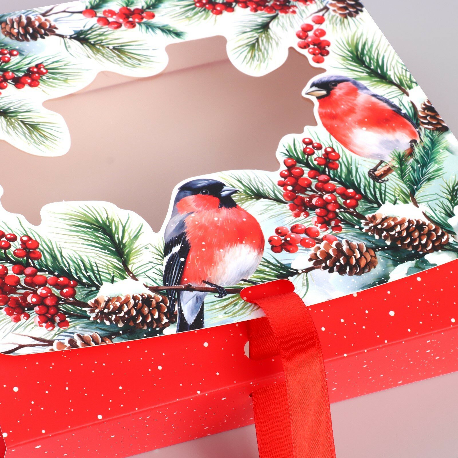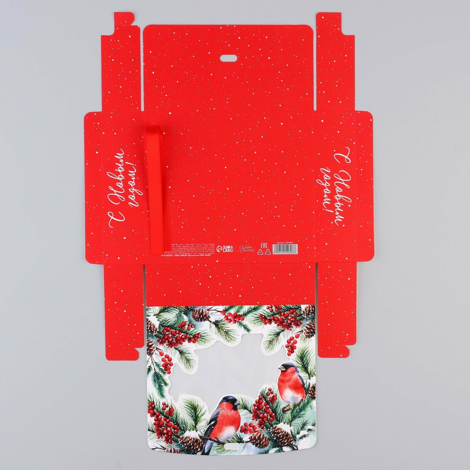 10 цен на Коробка новогодняя складная «Снегири на ветке» 20 х18 х 5 см, для упаковки подарка на Новый год.