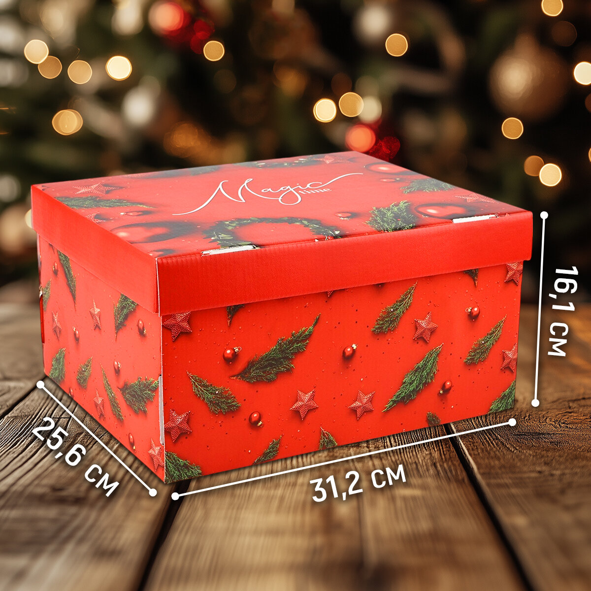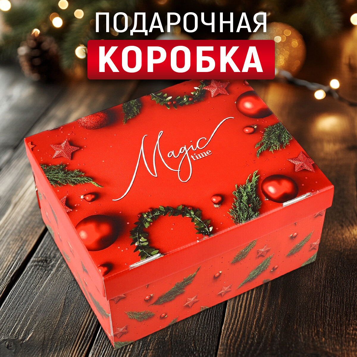 Коробка подарочная «Magic time», 31,2 х 25,6 х 16,1 см, красный, для упаковки подарка на Новый год информация: