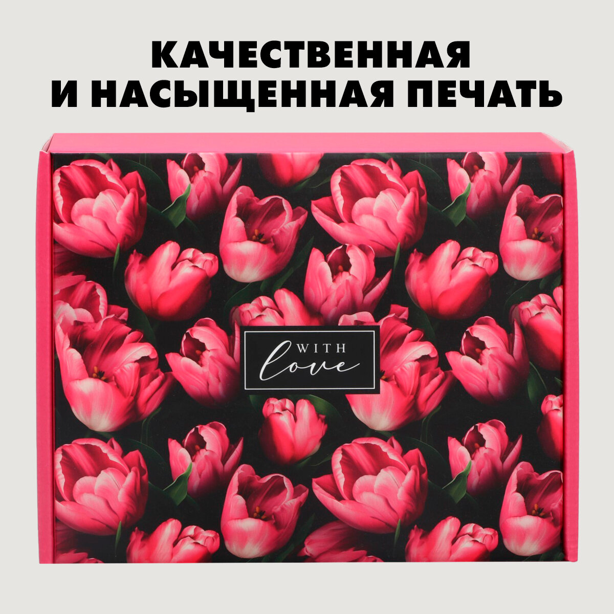 10 цен на Коробка подарочная складная «Тюльпаны», 27 х 21 х 9 см, розовая, для подарка