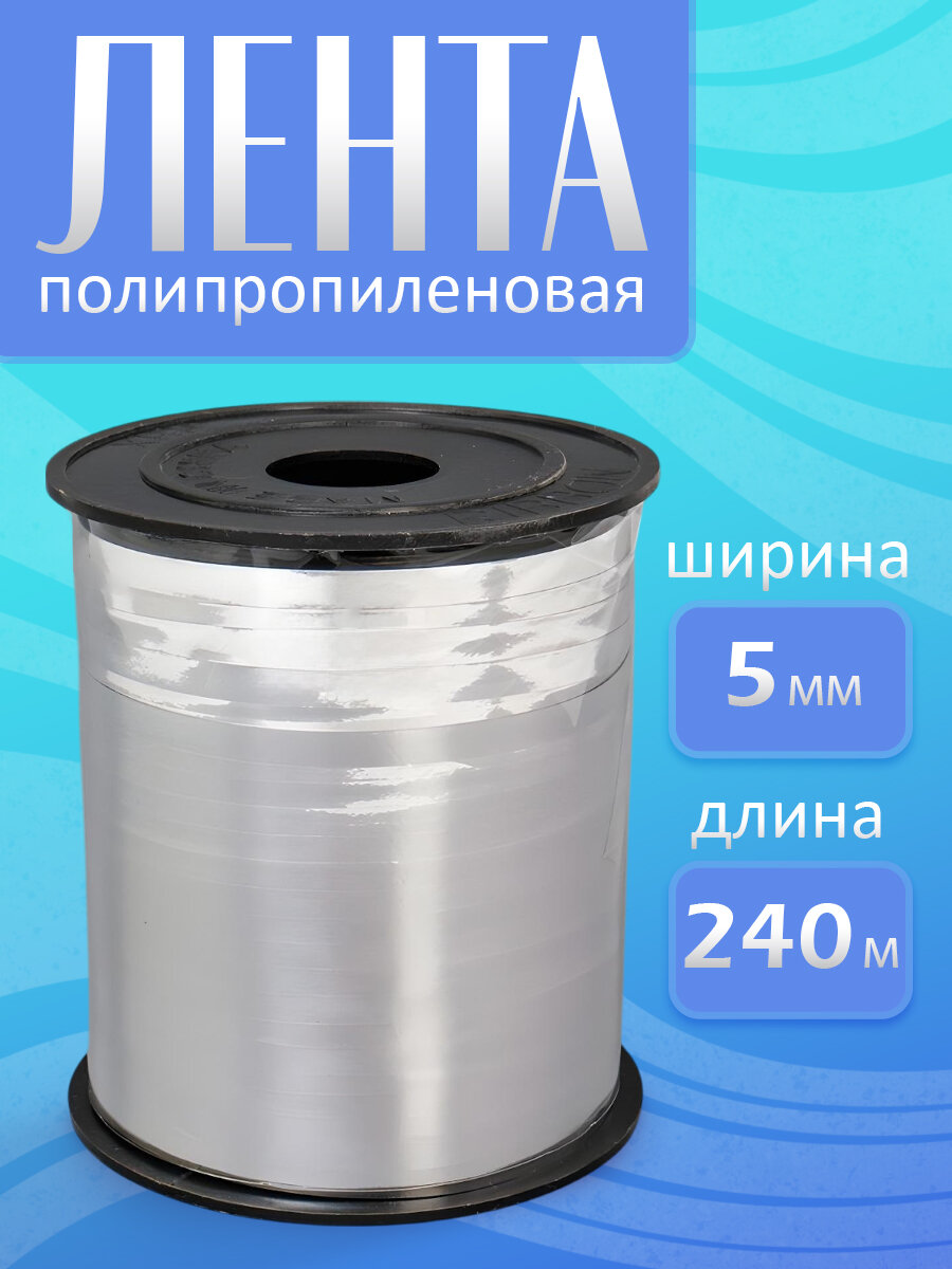 Лента для упаковки цветов и подарков, декоративная, полипропиленовая, 0,5 см х 240 м, серебро информация: