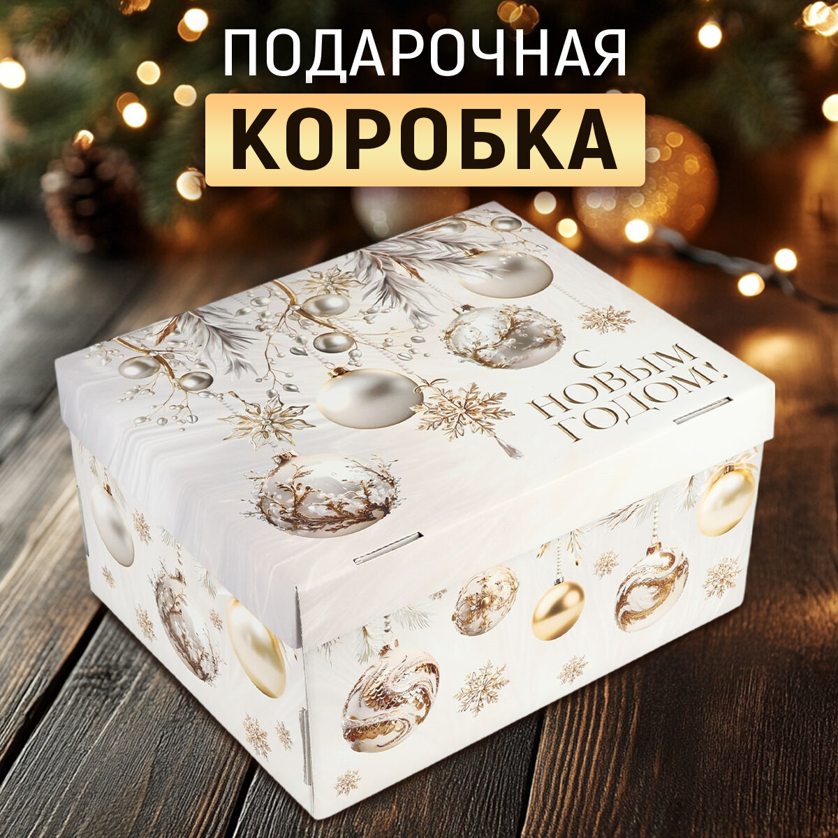 10 цен на Коробка подарочная новогодняя «Золотая роскошь», 31 х 25 х 16 см, для упаковки подарка на Новый год