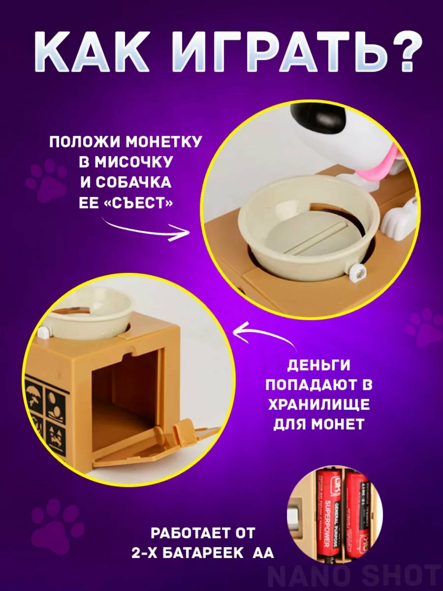 Отзывы на Интерактивная копилка-воришка для монет собака с миской, белая