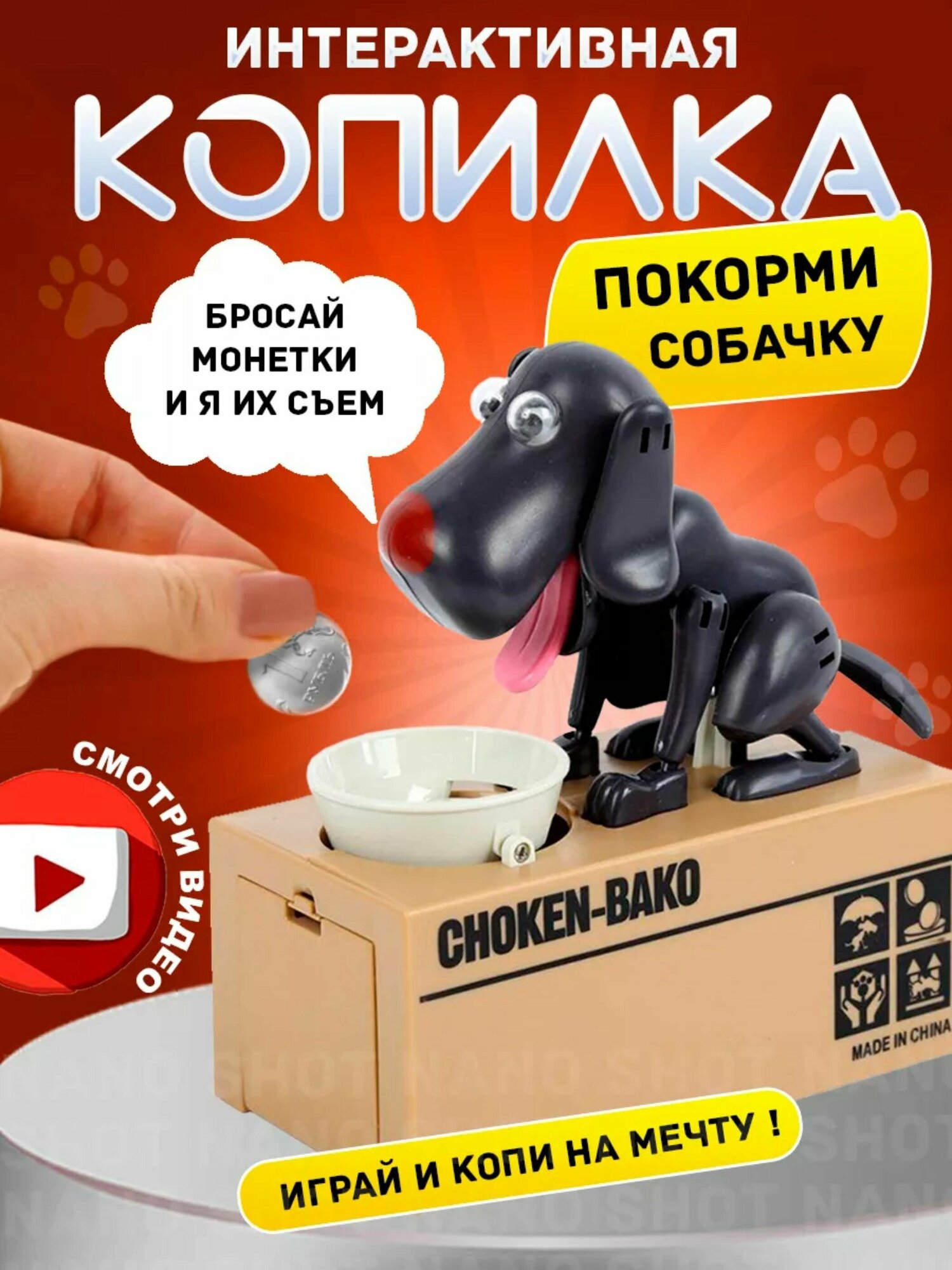Отзывы на Интерактивная копилка-воришка для монет собака с миской, черная