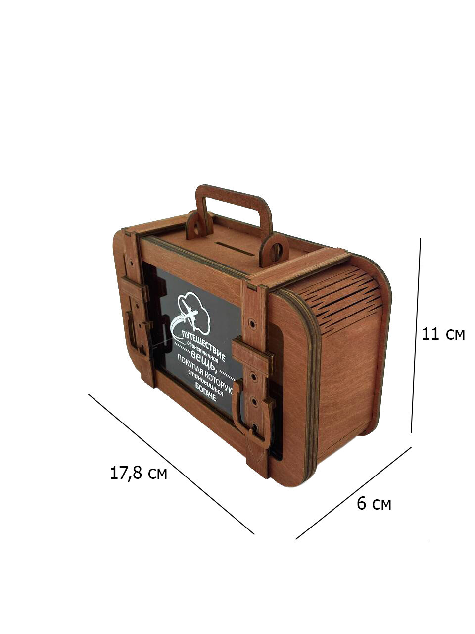 Копилка деревянная коричневая чемодан для денег чемоданчик подарок информация: