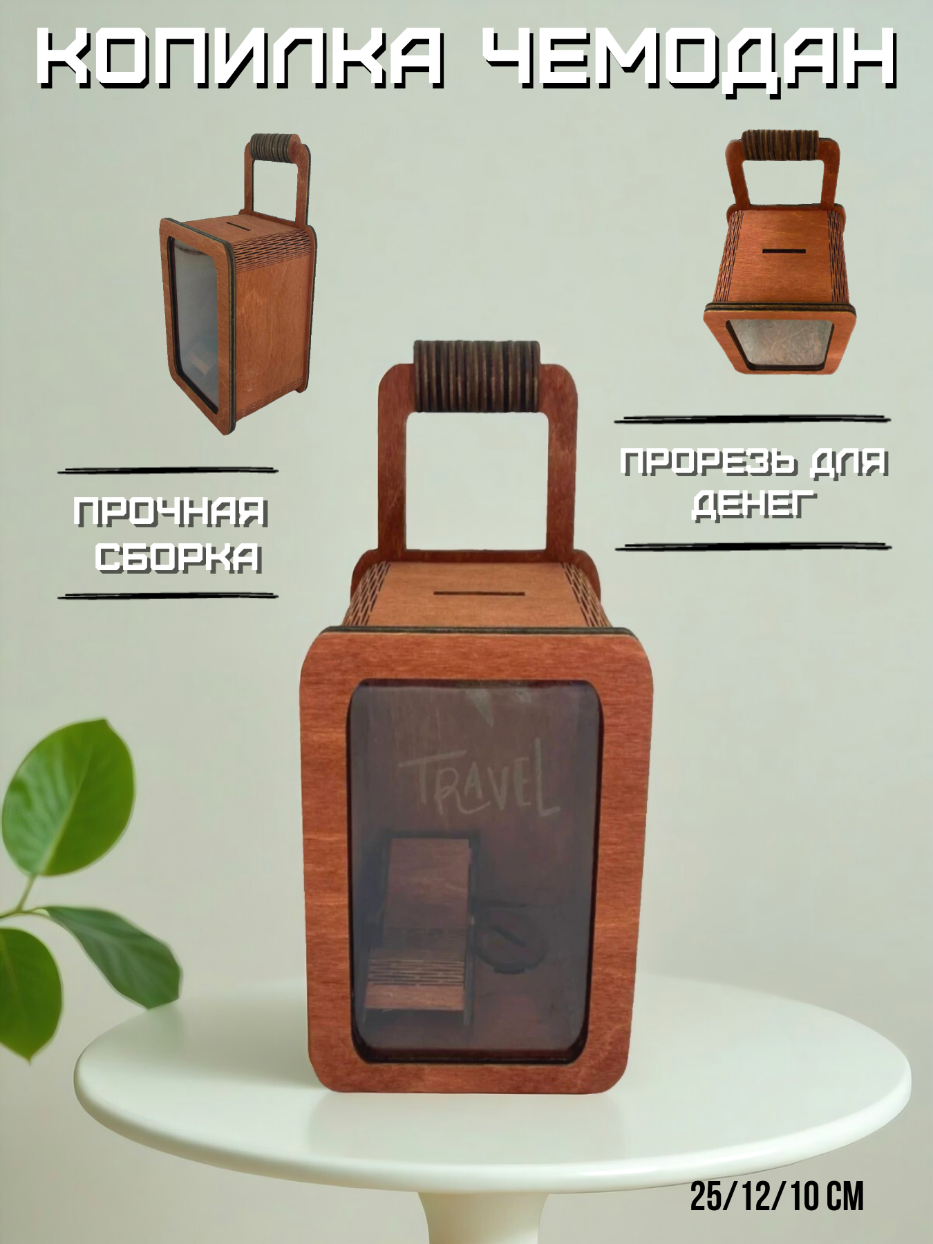 Копилка деревянная чемодан для денег сейф TRAVEL информация: