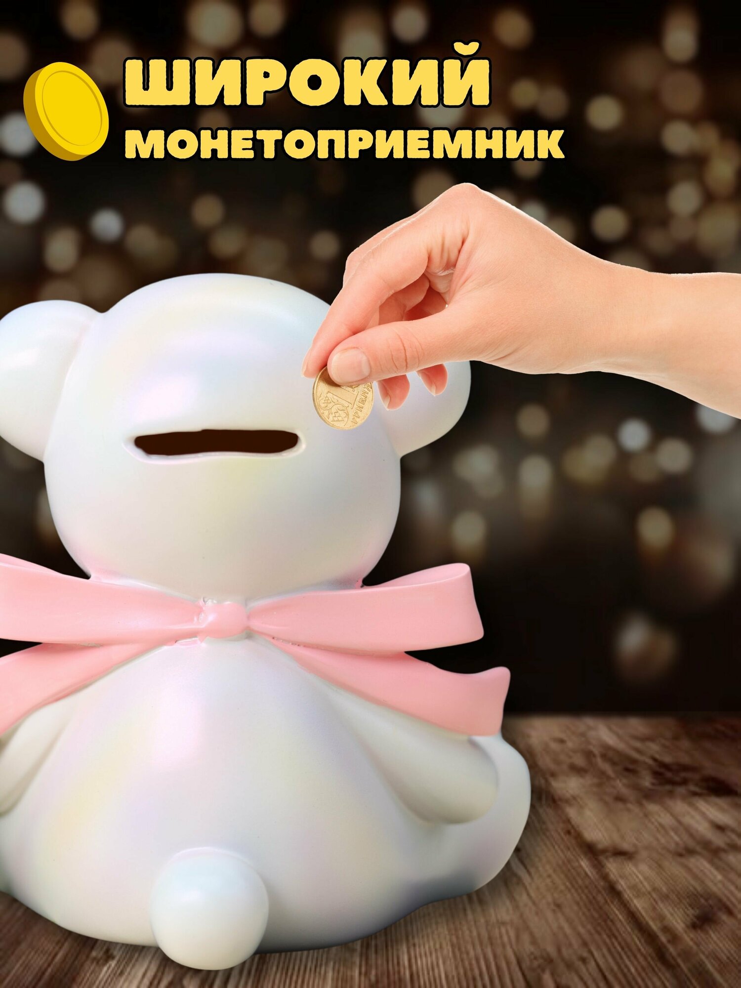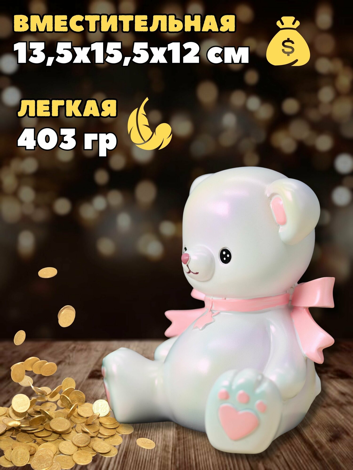 10 цен на Копилка для денег "Плюшевый мишка", белый, 14х16х12 см, пластик, для монет и купюр