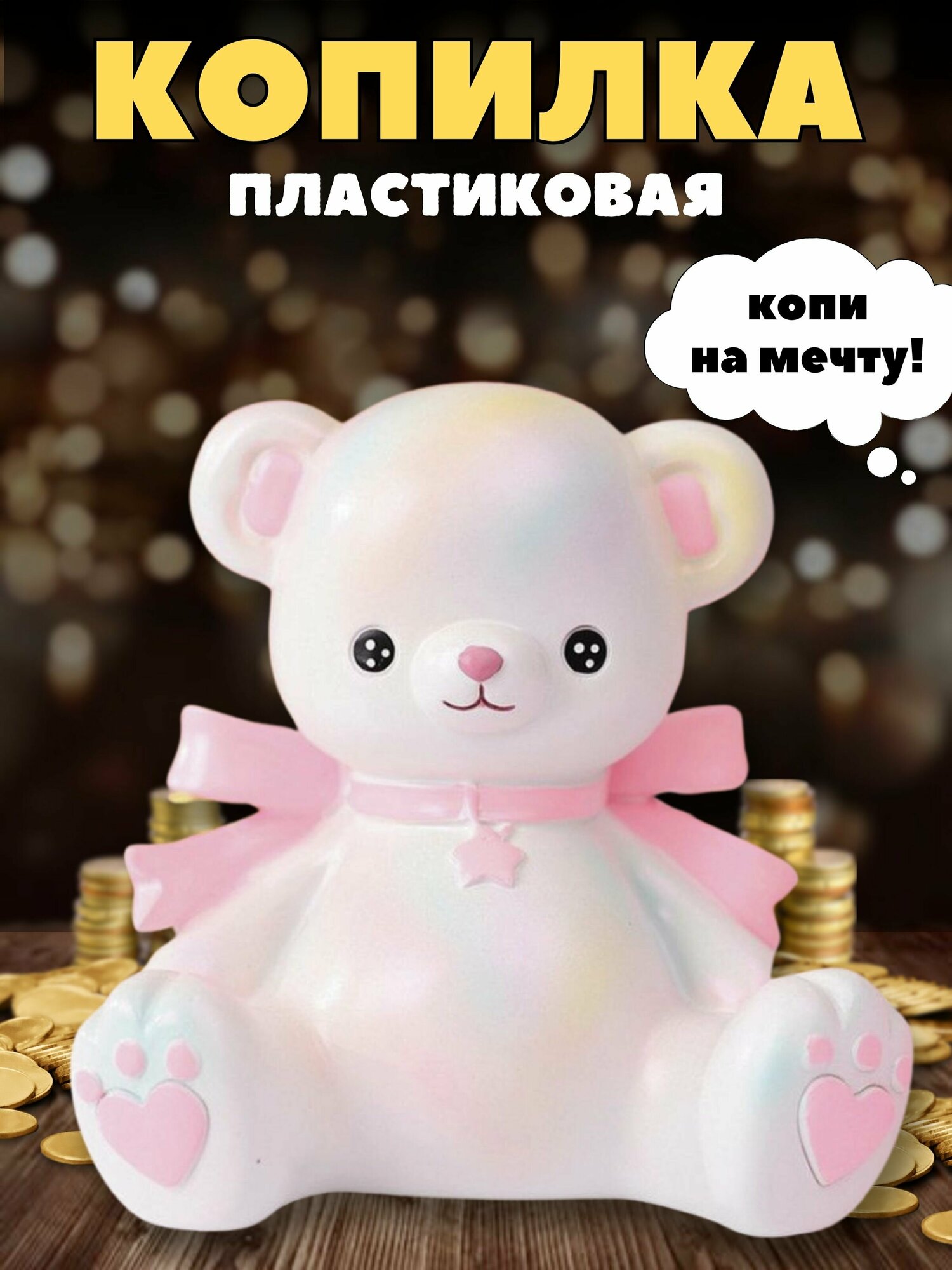 Отзывы на Копилка для денег "Плюшевый мишка", белый, 14х16х12 см, пластик, для монет и купюр