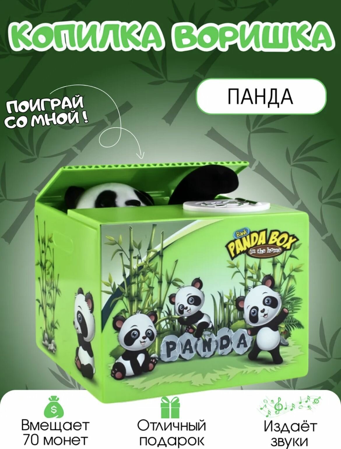Копилка "Панда воришка" для детей. Интерактивная копилка информация: