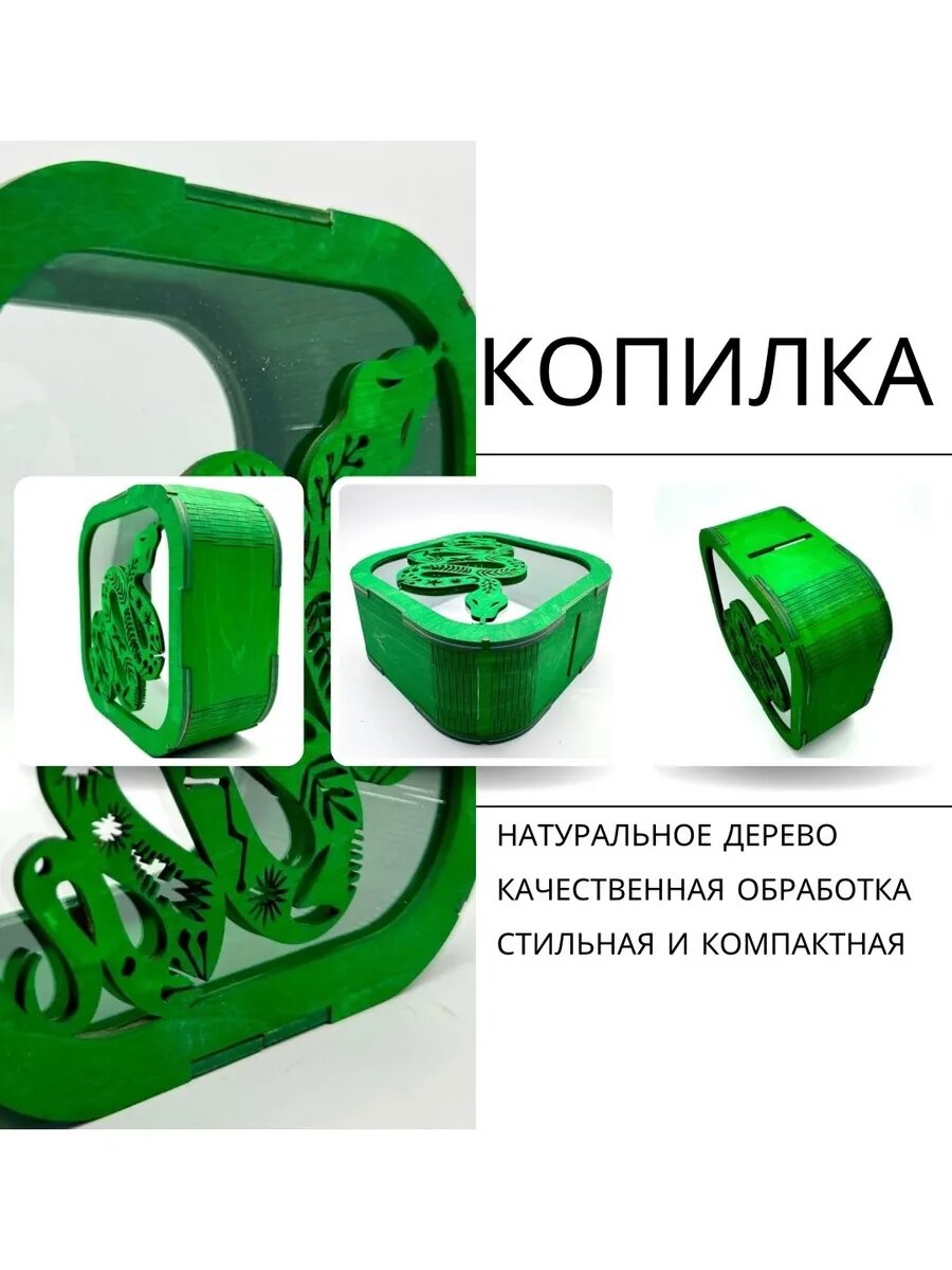 Копилка для денег деревянная прозрачная 16*16*6 змей информация: