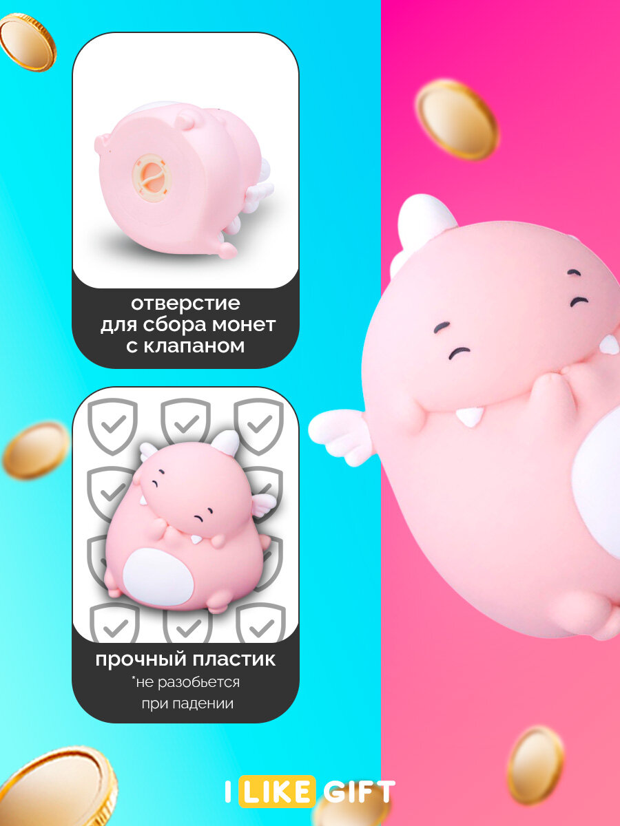 10 цен на Копилка для денег "Дракончик", розовый, 14х16х18 см, пластик, для монет и купюр