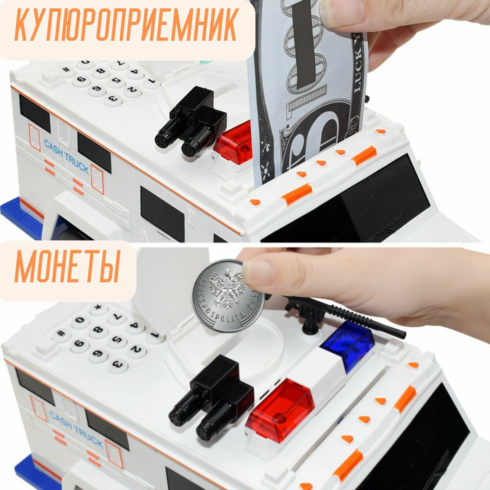 Машина Копилка сейф для денег детская с кодовым замком и купюроприемником информация: